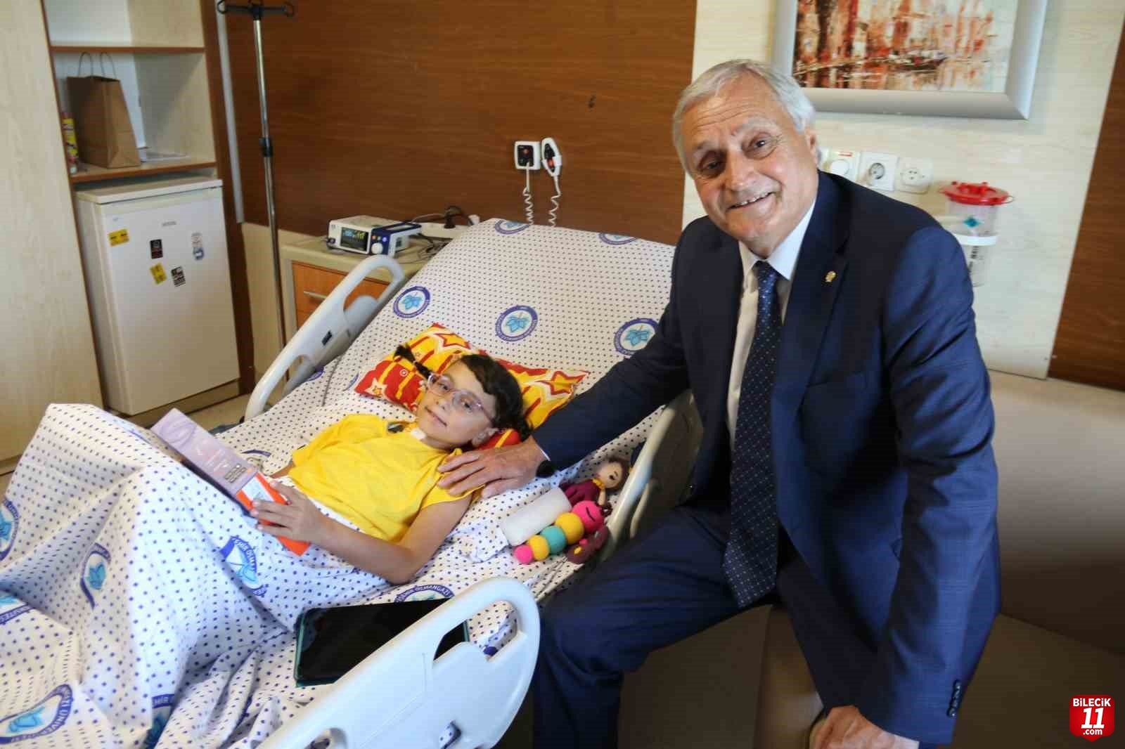 Bilecik’in Bozüyük ilçesinde klorlama çukuruna düştükten sonra kalbi durmuş bir şekilde çıkarılan ve Eskişehir Osmangazi Üniversitesi (ESOGÜ) Sağlık, Uygulama ve Araştırma Hastanesi’ndeki tedavisinin ardından hayati tehlikeyi atlatan 8 yaşındaki Ela Çam’ı Bozüyük Belediye Başkanı Mehmet Talat Bakkalcıoğlu ziyaret etti.