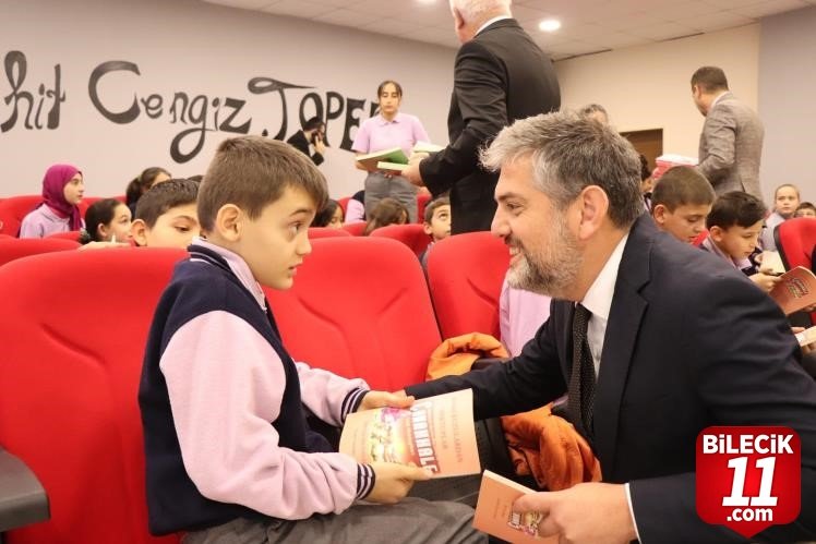 Bilecik’in Gölpazarı ilçesinde Kaymakam Alparslan Sözen ve Belediye Başkanı Hayri Suer çocuklara kitap hediye etti.