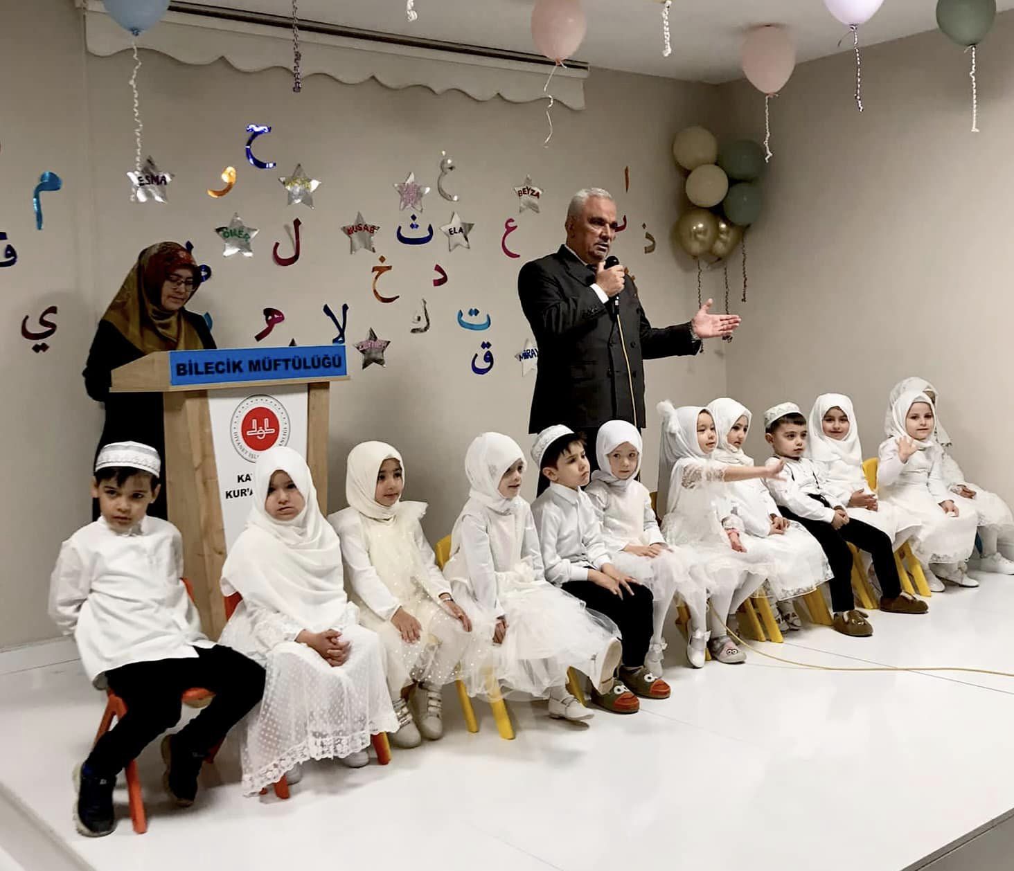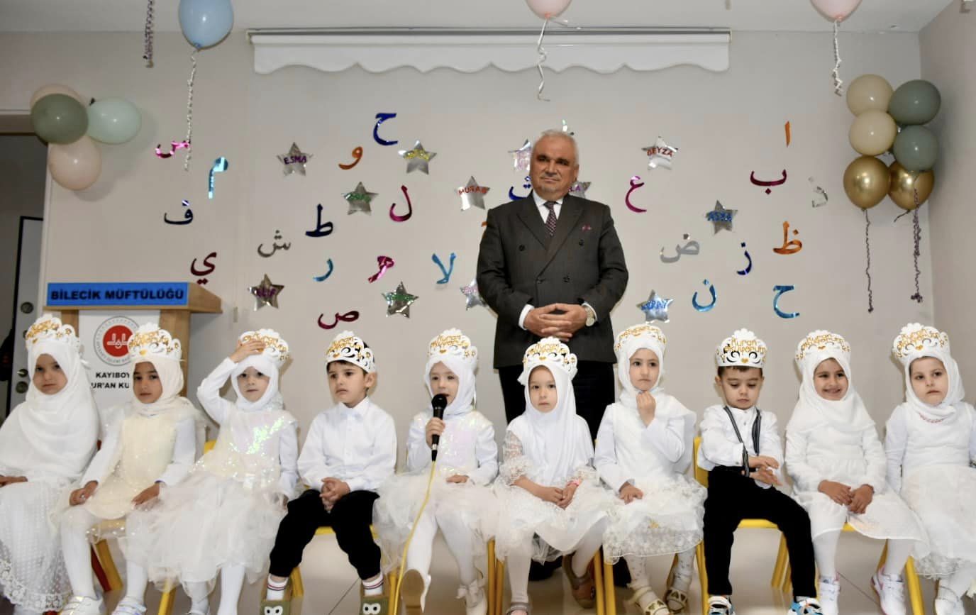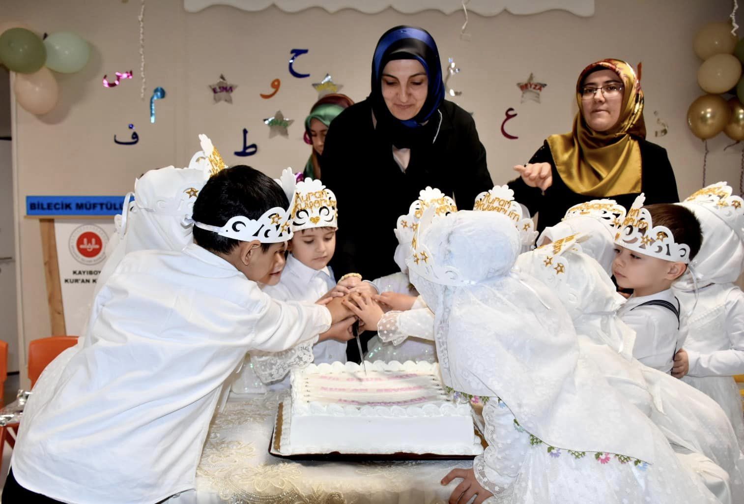 Bilecik Müftülüğüne bağlı Kayıboyu 4-6 Yaş Kur'an Kursu’nda eğitim gören minikler, Kur’an’a geçmenin sevincini yaşadı.