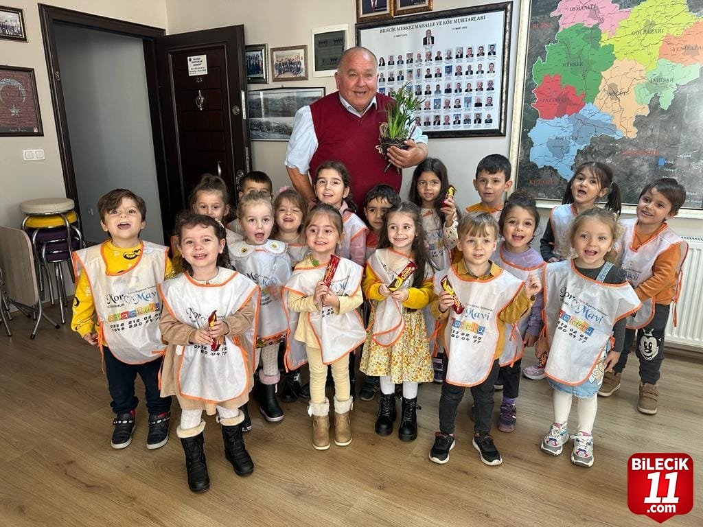 Mor Mavi Anaokulu öğrencileri Muhtarlar Derneği Başkanı İlhami Çınar’ı ziyaret etti.