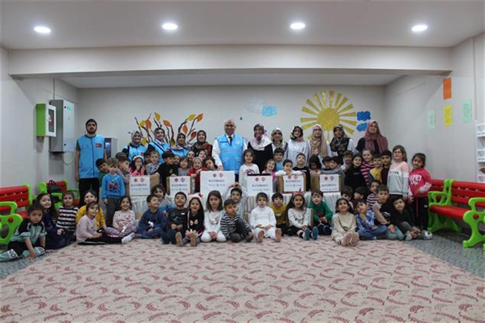 TDV Kadın Kolları ve öğreticilerinin gözetiminde gezen minikler, hazırladıkları kolileri ve paraları ihtiyaç sahibi ailelere kendi elleriyle teslim ettiler.