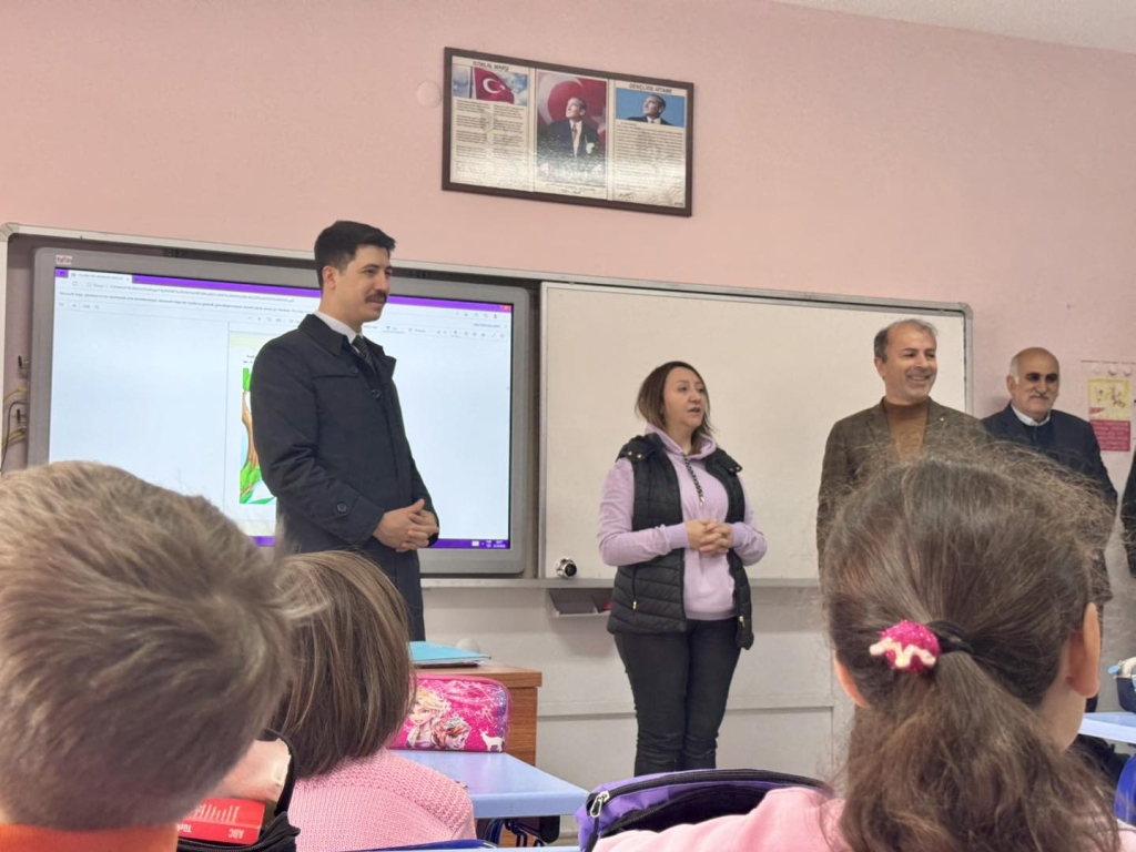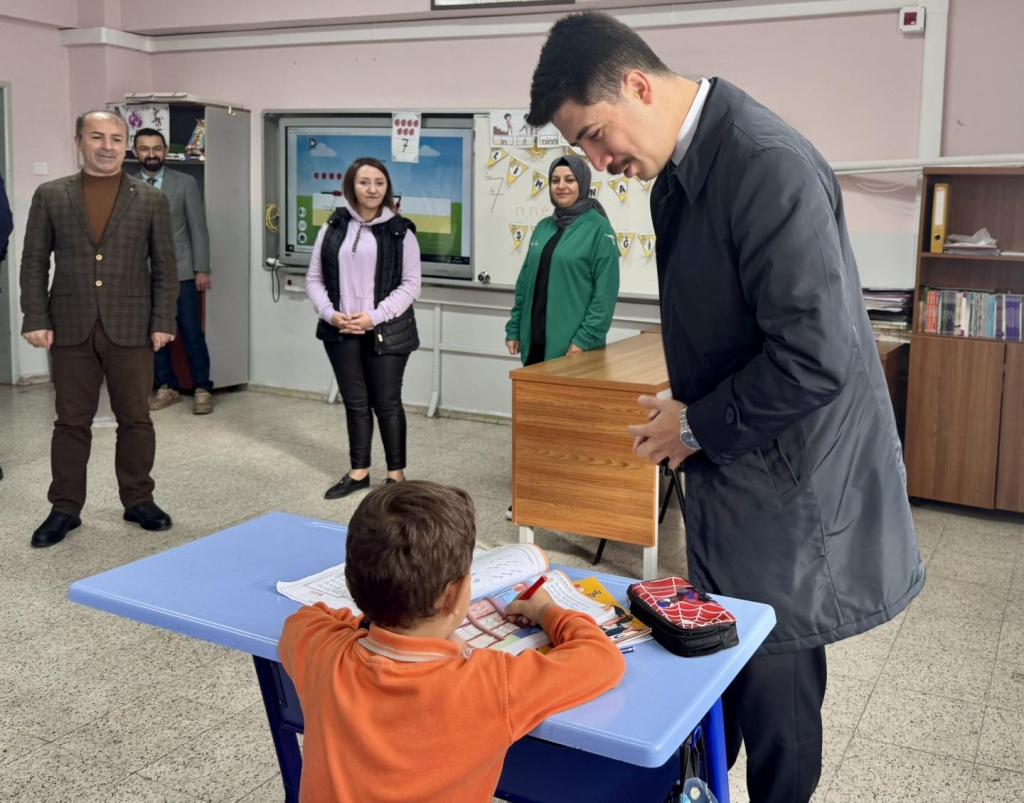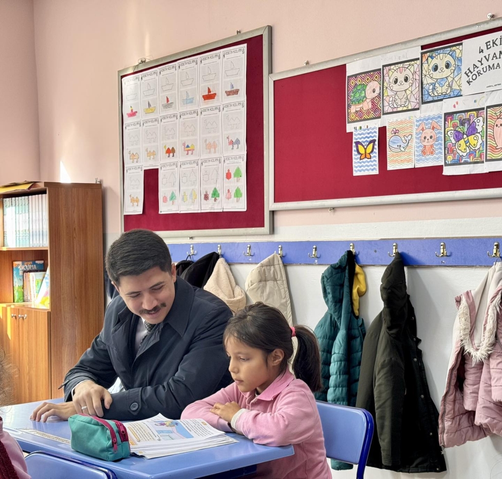 Sıralara öğrencilerle birlikte oturan protokol üyeleri onlarla tek tek sohbet etti.