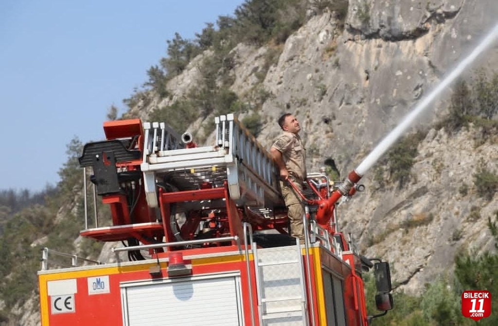 Sakarya’nın Geyve ilçesinde başlayarak Bilecik Osmaneli’ye ulaşan orman yangını etkisini hala sürdürüyor. Osmaneli’de devam eden orman yangınını söndürme çalışmaları aralıksız şekilde devam ediyor. Devam eden söndürme çalışmalarına ilişkin Bilecik İl Jandarma Komutanlığı, resmi sosyal medya hesabı üzerinden paylaşımda bulundu. Bilecik İl Jandarma Komutanlığının yapmış olduğu açıklamada; “ vatandaşlarımızla omuz omuza, devletimizin tüm imkanlarıyla yangına karşı mücadelemizi sürdürüyoruz. “ ifadelerini kullandı.