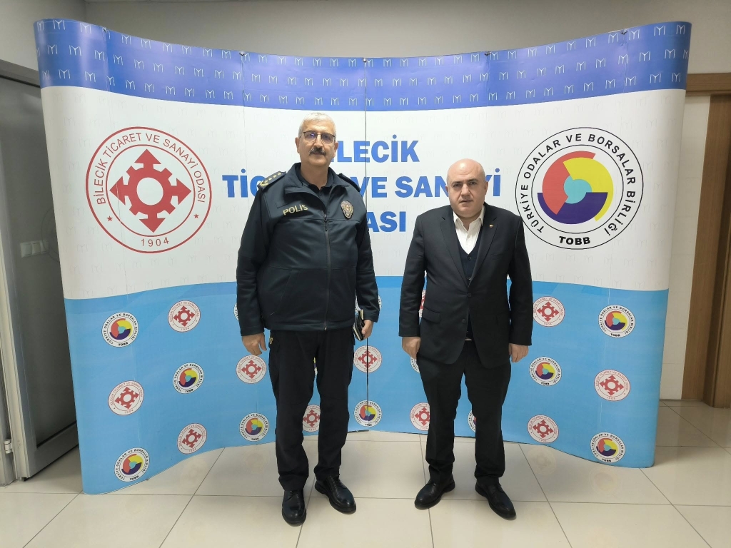 Bilecik Polis Meslek Eğitim Merkezi (POMEM) Müdürü, 1. Sınıf Emniyet Müdürü Suat Günbey, Bilecik Ticaret ve Sanayi Odası Yönetim Kurulu Başkanı Mehmet Ergün’ü makamında ziyaret etti.