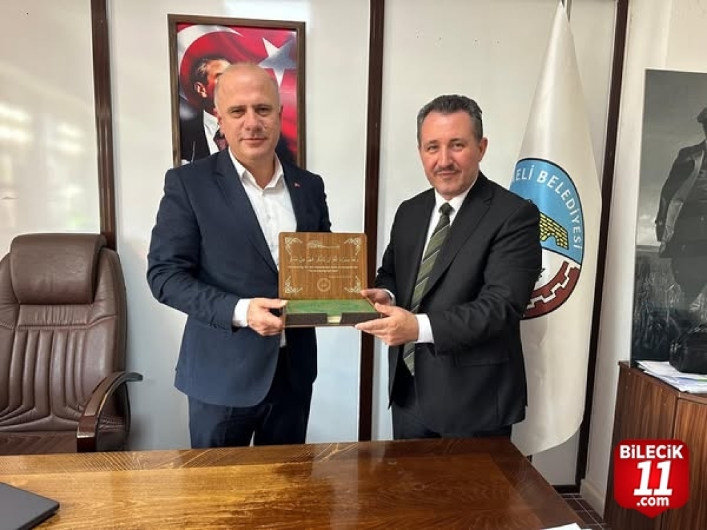 İl Müftüsü Ahmet Dilek, Osmaneli İlçe Müftüsü Recep Işıldar ile birlikte Belediye Başkanı Bekir Torun’u makamında ziyaret etti. Gerçekleştirilen ziyarette yürütülebilecek çalışmalar üzerine değerlendirmelerde bulunuldu. Belediye Başkanı Torun, “Nazik ziyaretleri için kendilerine teşekkür eder, çalışmalarında başarılar dileriz.” ifadelerini kullanarak Müftü Dilek ve İlçe Müftüsü Işıldar’a teşekkür etti. Ziyaret, günün anısına özel fotoğraf çekiminin yapılmasının ardından sona erdi.