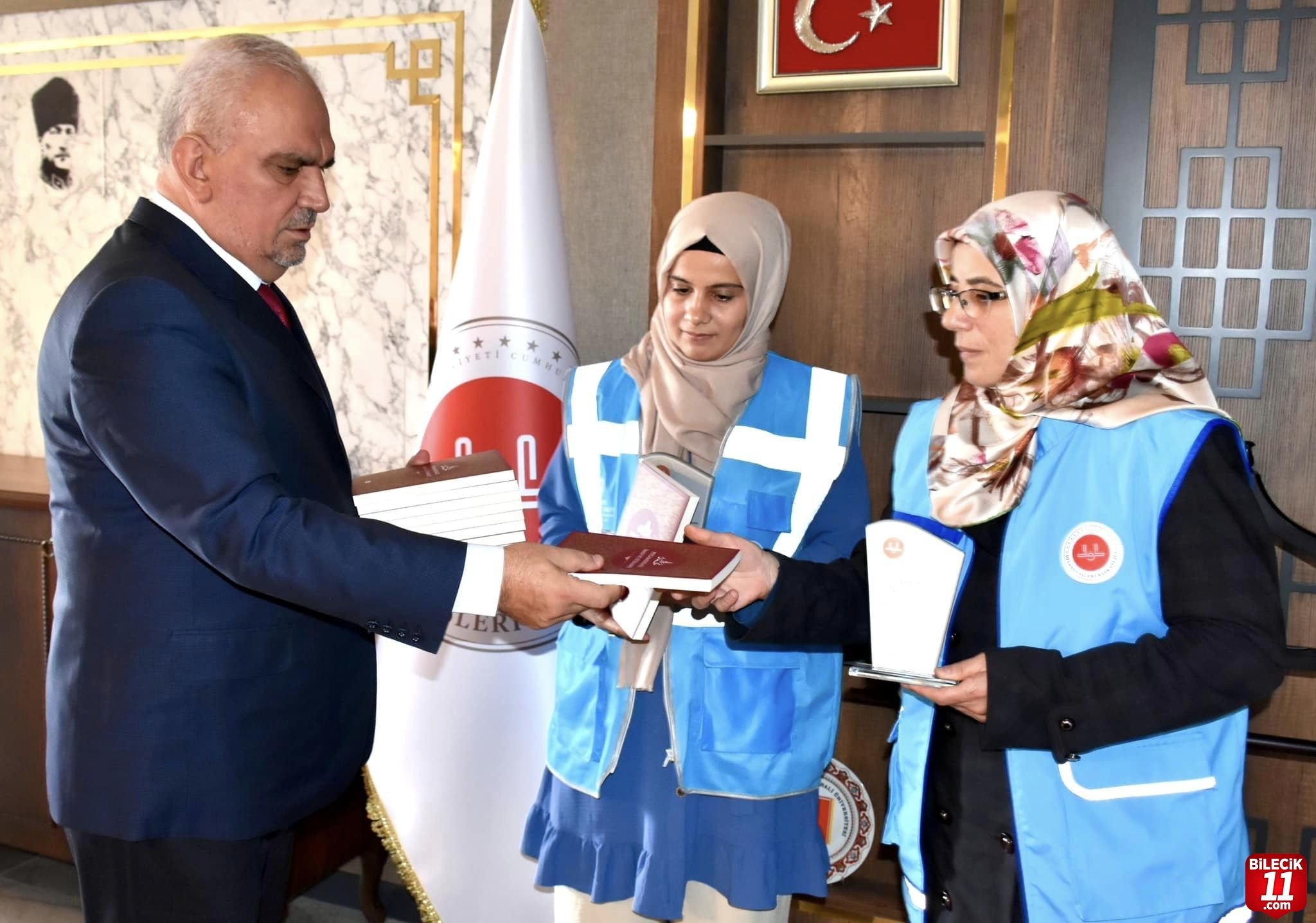 Müftülük makamında gönüllüleri kabul eden Müftü Erhun, ”Vakfımız bünyesinde yapmış olduğunuz özverili çalışmalarınız için teşekkür ediyorum. Bilecik’te insanlarımıza umut oldunuz. Hayırlı hizmetlerinizin devamını diliyorum.” dedi