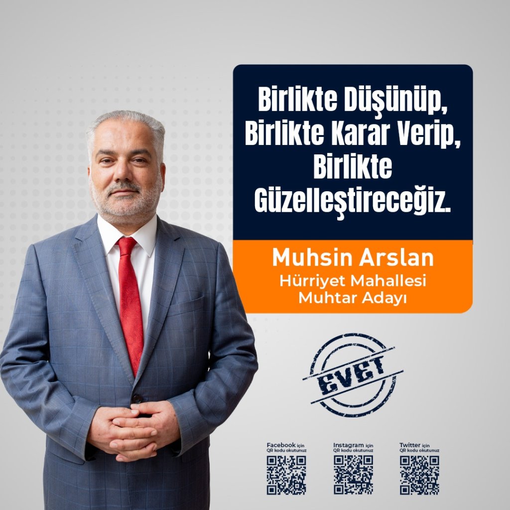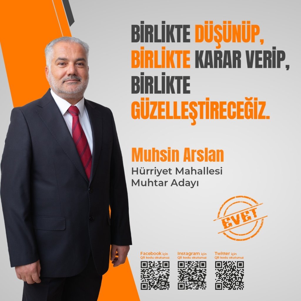 Çeyrek asırlık kamu ve medya tecrübesiyle bu güne kadar ülkesine gece gündüz demeden öz veri ile hizmet eden Muhsin Arslan, tüm donanımı ve birikimiyle yaşadığı mahallesine hizmet vermek için kolları sıvadı.