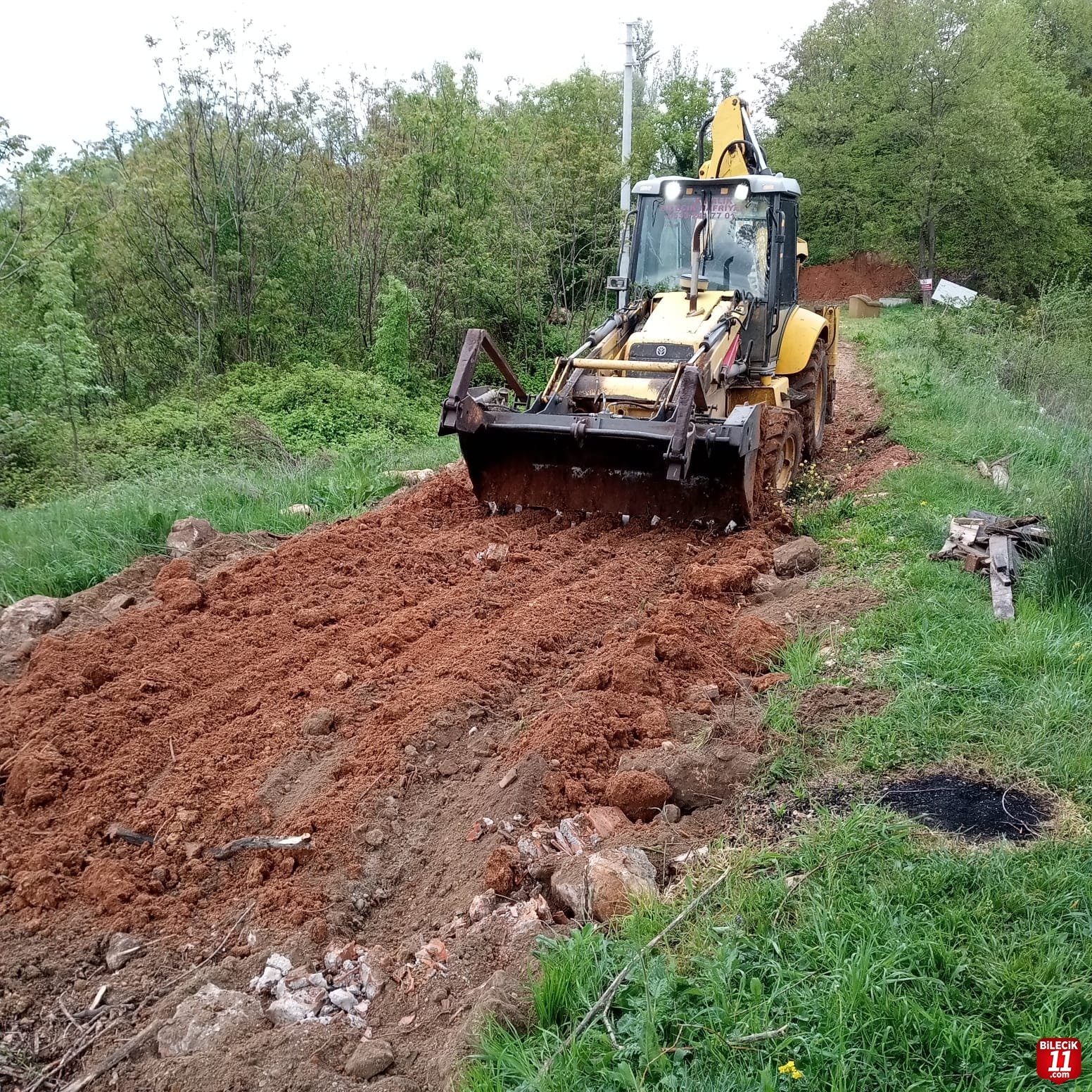 Kendisine ait olan iş makinası ile köyde yapılması gereken bazı ufak tefek işleri çözen Muhtar Zengin, gölet yoluna malzeme dökerek gölete gidiş yolunu yaptı.