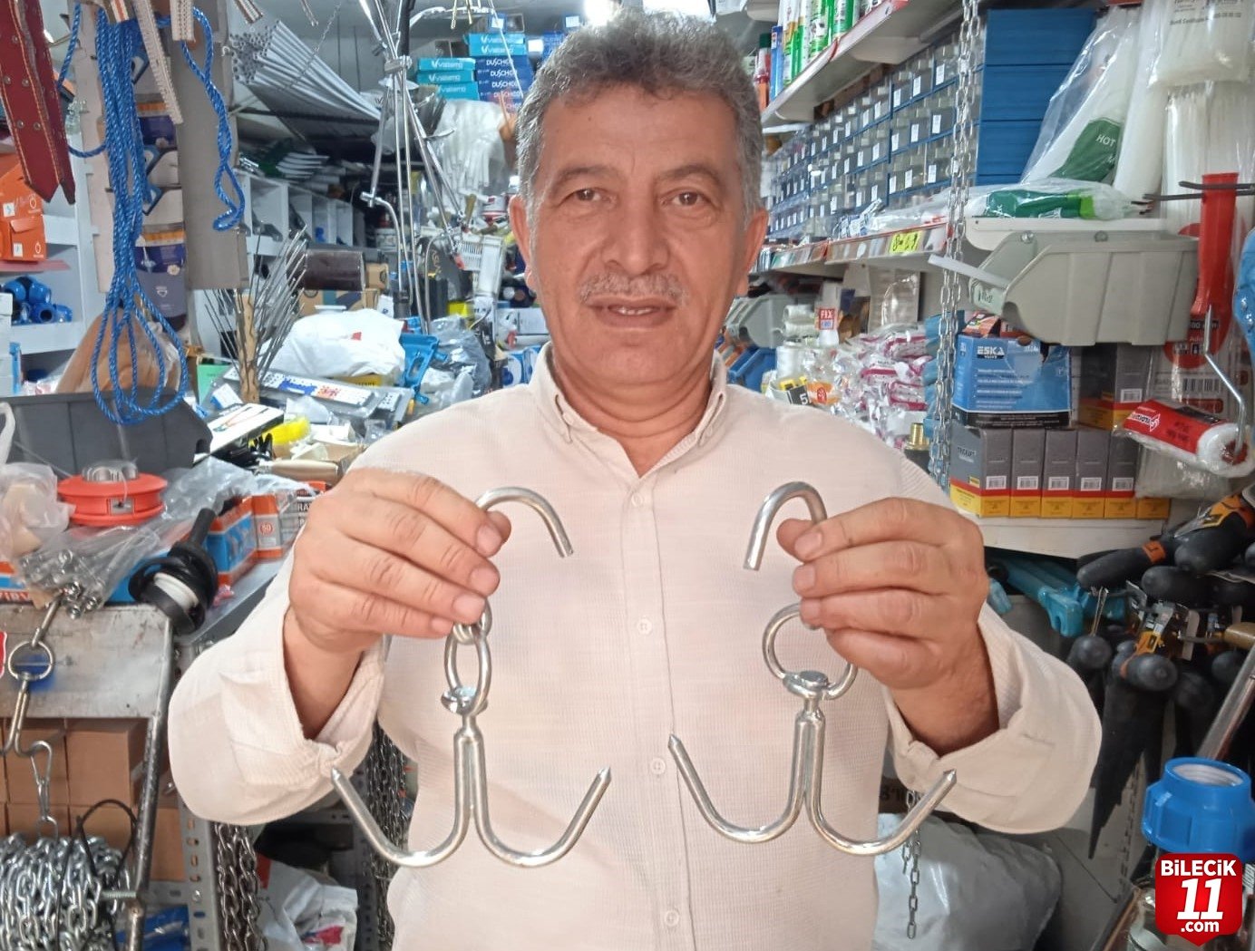 “Kurban kesimi ile ilgili çengel, kurban bıçağı, caraskal (elektrikli vinç), hayvan bağlamak için zincir ve yular gibi ekipmanlar satıyoruz. Kurban kesimi yapacak vatandaşlar Kurban Bayramı’nda en çok caraskal ve et çengeline ihtiyaç duyuyor. Et çengeli standart boyda oluyor. Çengeller küçükbaş hayvan asmak için kullanır. Bir çengelin fiyatı 30 lira. Caraskalın fiyatı 600 ila bin 200 lira arasında değişiyor. Bir tonluk el caraskalı bin 500 lira. Hayvan zincirleri 65 liradan satılıyor. Hayvan kesecek vatandaşların ekipmanlara şu ana kadar pek rağbeti yok. Çengel, caraskal, zincir gibi malzemeler satıyoruz ancak geçen bayramlara göre hareketlilik yaşanmıyor. Bayrama son 1-2 gün kala satış yapmayı umuyoruz. Vatandaşlar gerekli alışverişini genellikle son günlere sığdırmaya çalışır. İnşallah bayram üstü yoğunluk olacağını düşünüyoruz.” – İHA