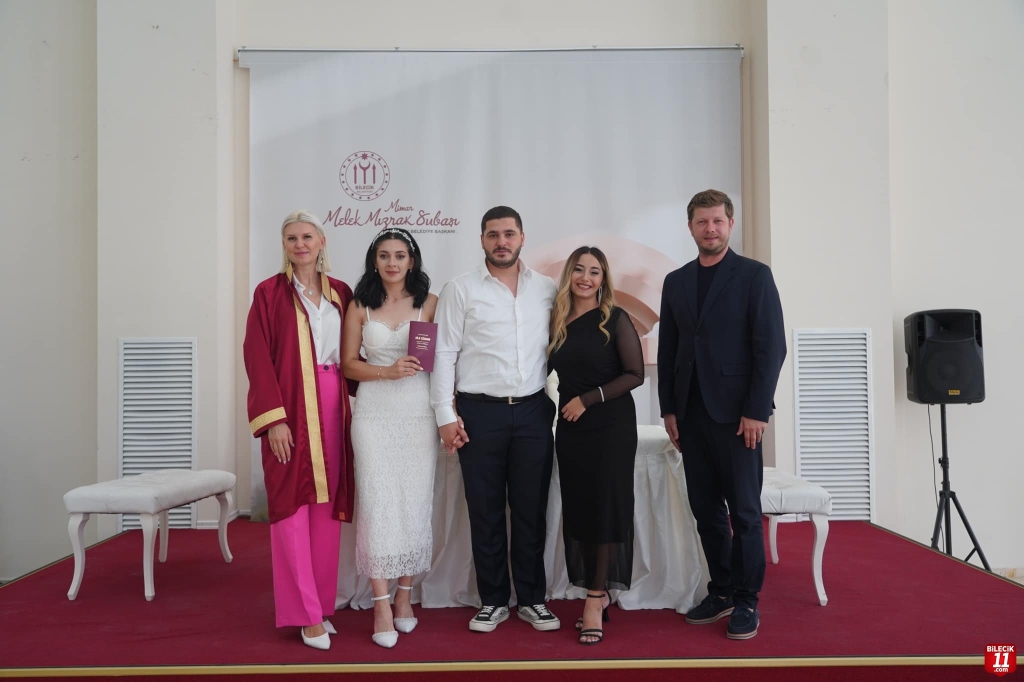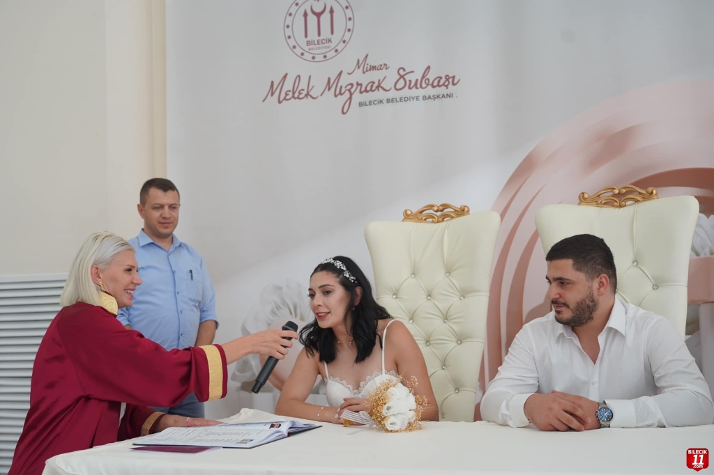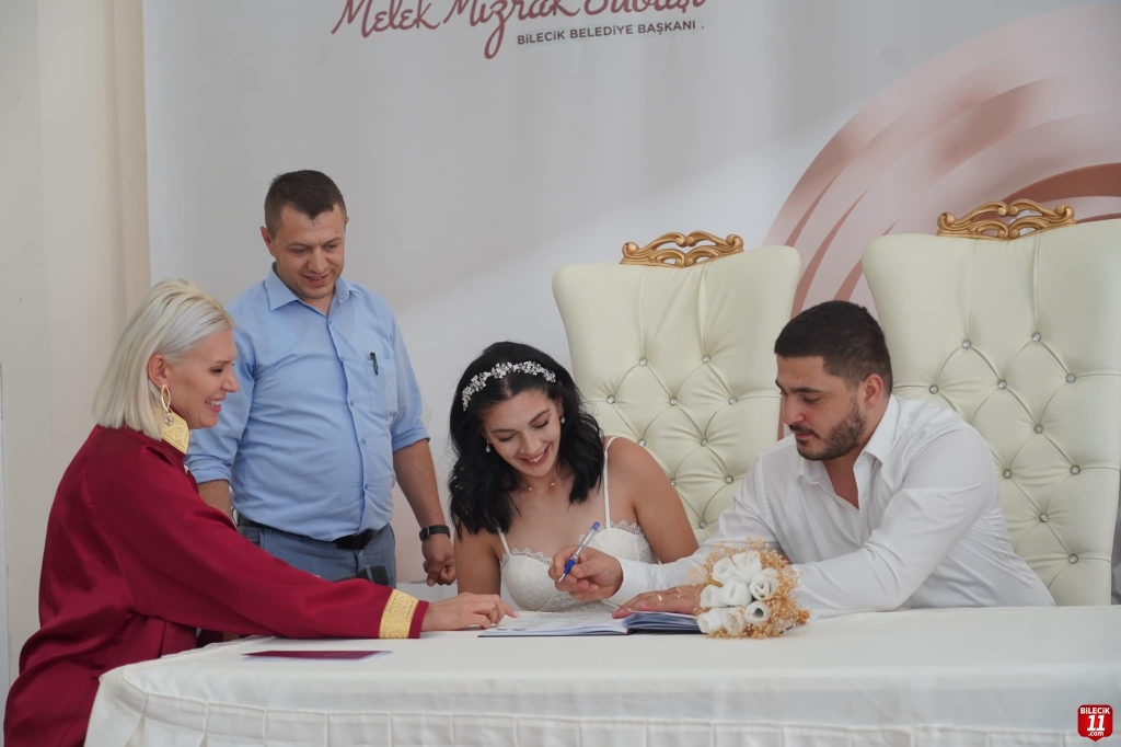 Genç çiftin nikahlarını Belediye Başkanı Melek Mızrak Subaşı kıyarken, şahitliklerini ise Başkan yardımcısı Yaşar Külhan yaptı.