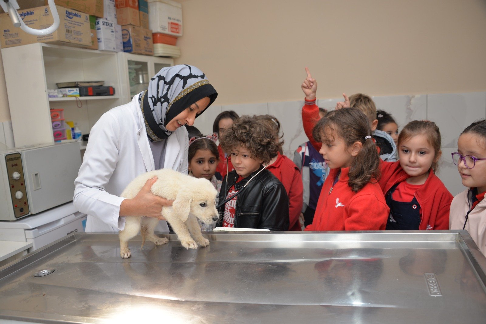 Bugün değil her gün onlara sahip çıkalım! Onlar bize emanet” dedi.  Ardından sokakta bulunarak, tedavi edilen ve çeşitli aşıları yapılan sokak hayvanlarının bulunduğu barınağı ziyaret eden öğrenciler, Bozüyük Belediyesi Veteriner hekimi ile barınakta bulunan köpekler ile yakından ilgilendiler. Veteriner hekime sormak istedikleri ve merak ettikleri soruları yönelten öğrenciler yavru köpekleri sevdiler, kalp atışlarını dinlediler.