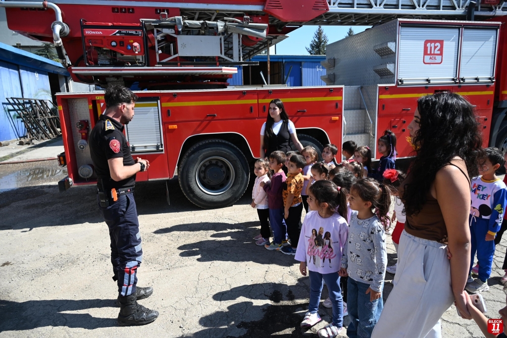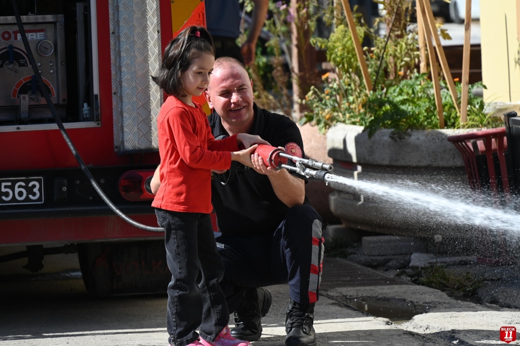 Gerçekleştirilen ziyarette minik öğrenciler yangın eğitimi aldı. Eğitimde minik öğrenciler, yangın hakkında bilgi edinerek yangın söndürme ekipmanlarını tanıdılar ve su hortumunu kullanarak pratik yaptılar. Eğlenceli bir şekilde geçen eğitimin ardından İtfaiye personeli, öğrencilere Türk Bayrağı dağıtarak kek ve meyve suyu ikramında bulundu.