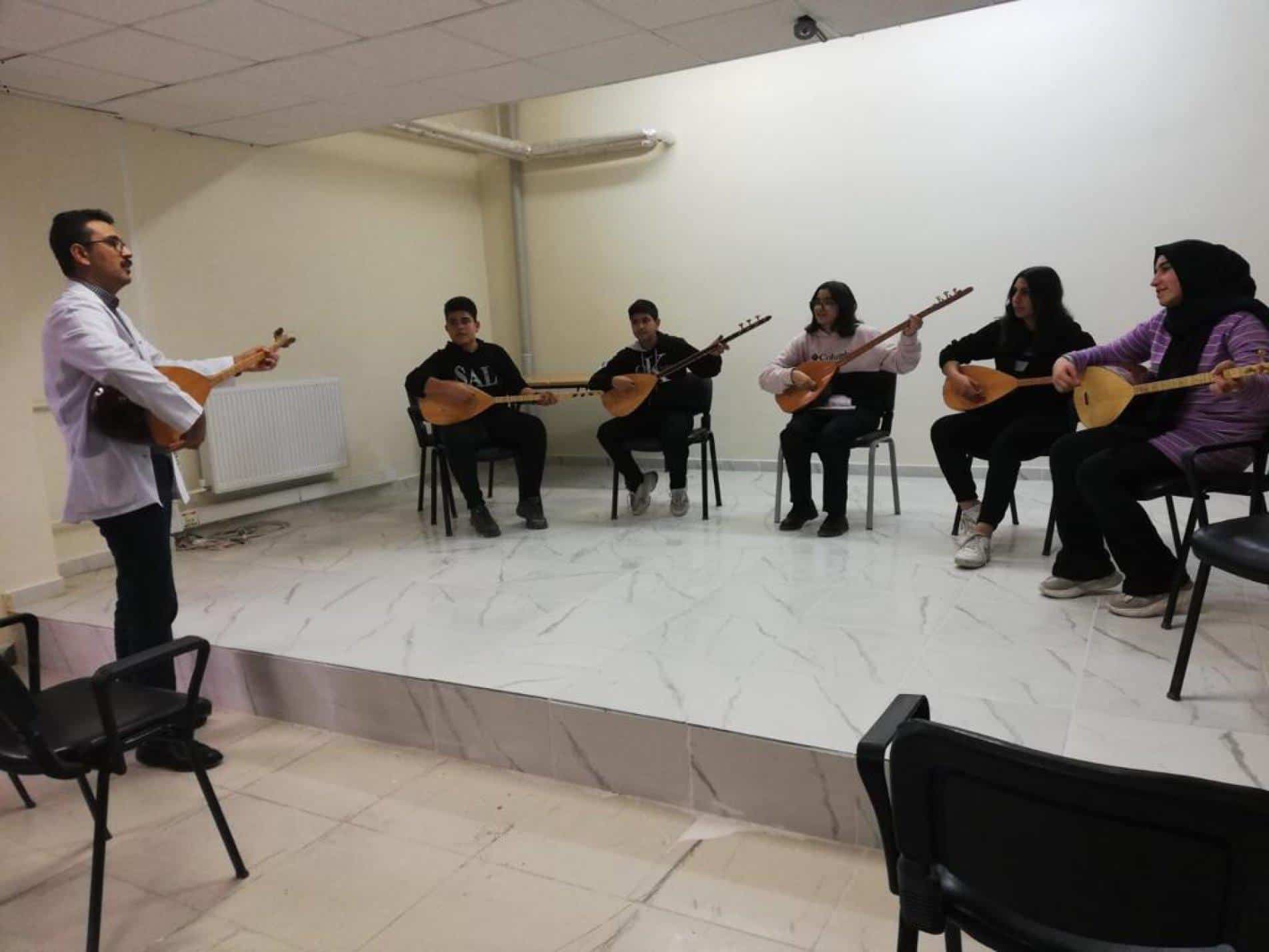 Müzik Öğretmeni Ahmet İlker Büyükaşçı yönetiminde sürdürülen koro ve bağlama çalışmaları öğrencilerin de özverili katkılarıyla devam ediyor. Haftanın iki günü devam eden koro ve bağlama ekibi okul içinde ve ilçe çapında yapılan faaliyetlerde katkı sunuyor. Sene sonuna kadar hem geleneksel hem de çağdaş ezgileri repertuarlarına dahil edeceklerini belirten öğrenciler korosu il çapı ve sonrasında iller arası koro programları amaçlıyorlar.