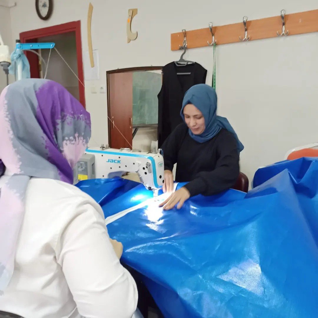 Halk Eğitim Merkezinden yapılan açıklamada, ”Depremden etkilenen bölgelere gönderilmek üzere kurumumuz dikiş kursu öğretmenleri tarafından çadır dikimi yapıldı. Bizler elimizden geleni yapmaya gayret ediyoruz. Bu özverili çalışmalarından dolayı değerli öğretmenlerimize teşekkür ederiz.” denildi.