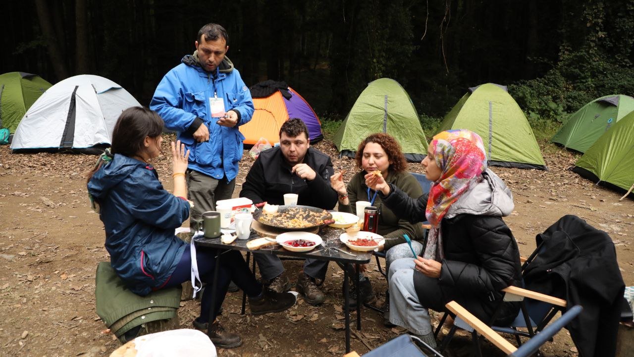 Projenin ilk kısmını kamp ve doğada hayat kalmaya yönelik uygulamalı olarak İstanbul’da yürüttüklerini vurgulayan Ünal, ”Doğa Koruma Milli Parklar 1. Bölge Müdürlüğü işbirliğinde Belgrad Ormanı Tabiat Parkında 2 kamp kurduk. Kampta yaşadık ve kamp içerisinde hayatta kalmaya yönelik etkinliklerle projenin ilk aşamasını tamamladık. İkinci aşamasını Osmaneli ilçemizde devam ettiriyoruz. Burası bizim ikinci evimiz gibi. Proje kapsamında 6 farklı üniversiteden 12 eğitmenimiz var. Konseptimiz orman okulu, bu konsept kapsamında Türkiye’nin farklı illerinden 20 katılımcımız var.” diye konuştu.