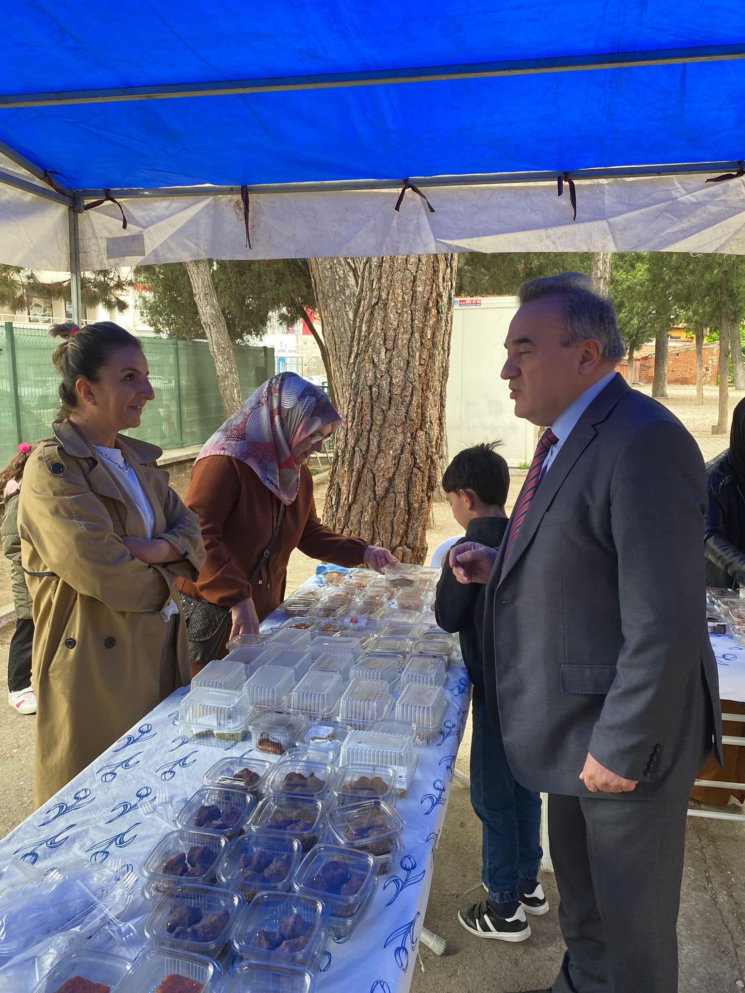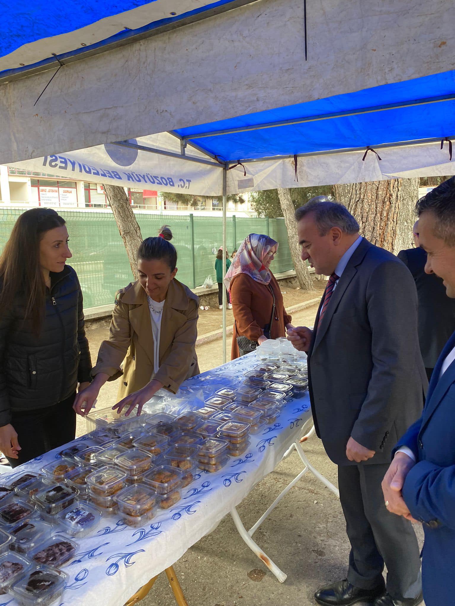 Bozüyük Kaymakamı Adem Öztürk, İlçe Milli Eğitim Müdürü Mahmut Demir ve Halk Eğitim Merkezi Müdürü Levent Susam ile birlikte Cumhuriyet İlkokulunda öğrenci velilerinin katkılarıyla depremzede vatandaşlarımız için düzenlenen kermese katıldı.