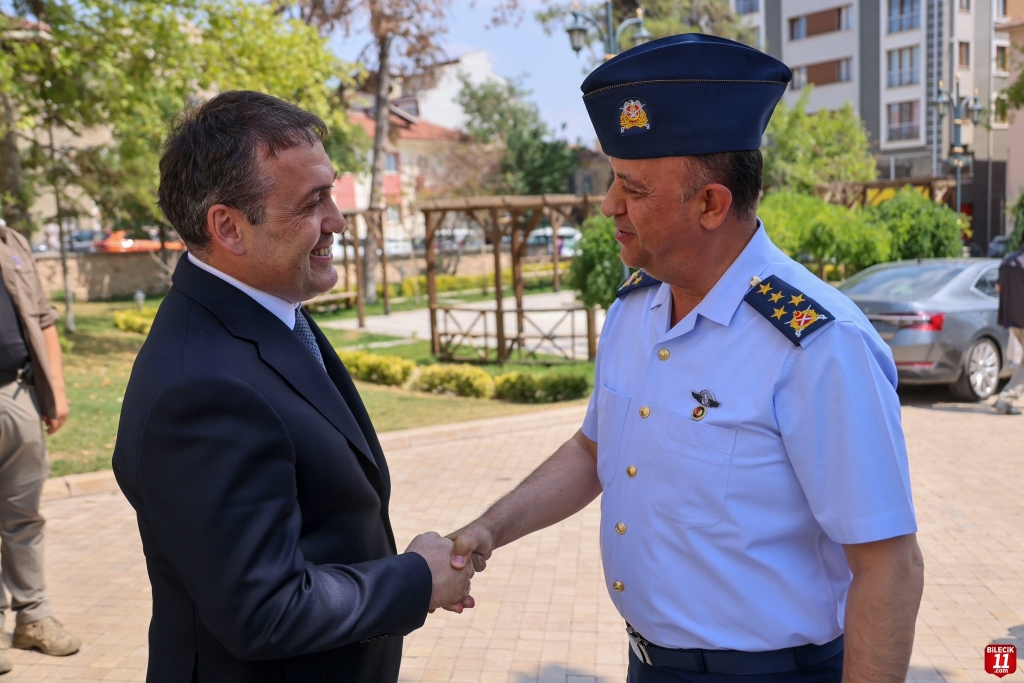 Vali Sözer Valiliği bahçesinde Orgeneral İsmail Güneykaya’yı karşılarken ardından makam odasına geçildi.