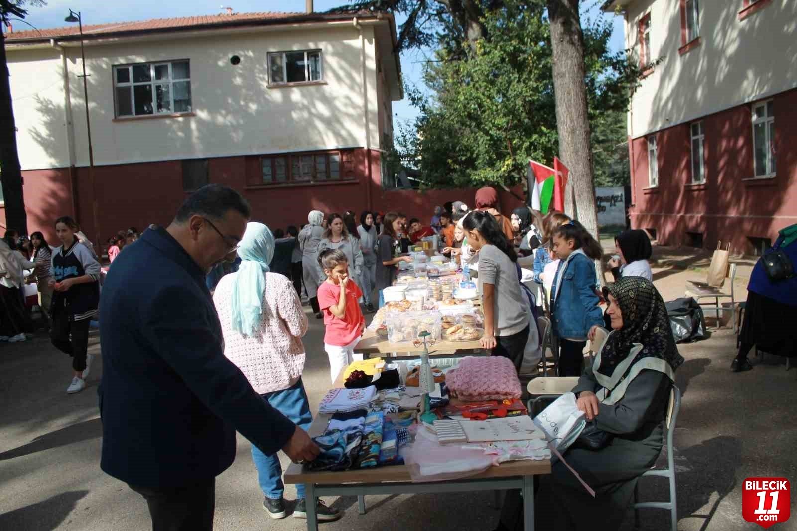 Eskişehir’de bulunan bir ortaokulda Gazze’ye yardım için düzenlenen hayır çarşısında öğrenciler ve veliler tarafından 82 bin TL toplandı.
