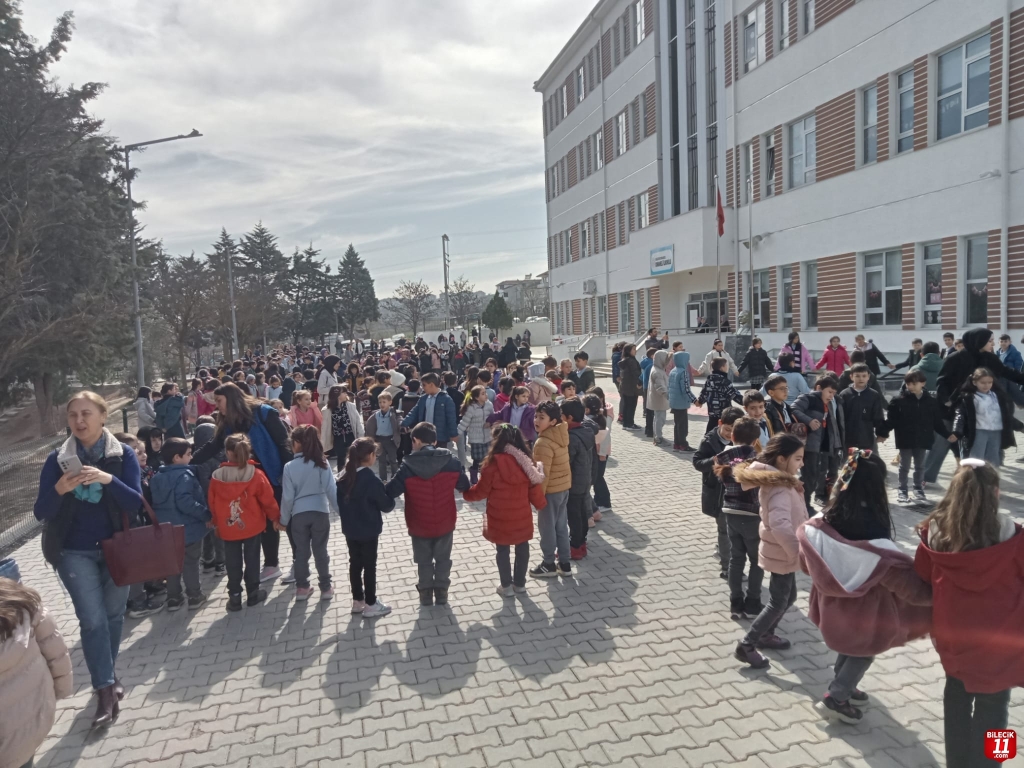 Bilecik’in Osmaneli ilçesinde öğrenciler ve öğretmenlerin katılımıyla deprem tatbikatı yapıldı