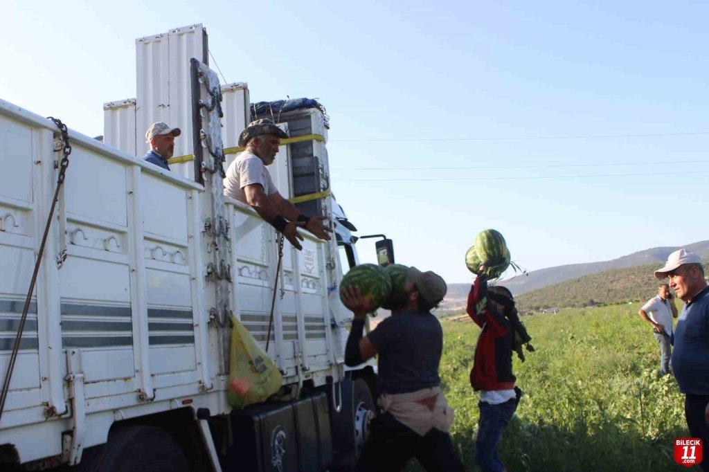 Toprak yapısı ve iklim şartlarından dolayı karpuz üretimine elverişli olan ilçeye karpuz hasadı için Şanlıurfa, Mardin, Adana ve Diyarbakır’dan tarım işçileri geliyor.