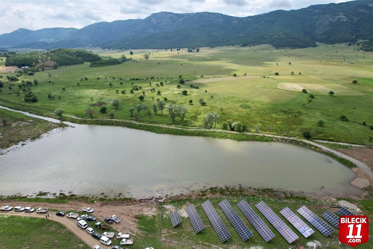 Yapılan göletlerin yaklaşık 3.000 dönüm arazinin su ihtiyacını karşılanacağının altını çizen Vali Kızılkaya; “Göletlerimizin bulunduğu yaylamız önceleri elverişsiz bir araziyken Tarım ve Orman İl Müdürlüğümüzün alanında uzman mühendisleri ve personelinin titiz çalışması sonucu ıslah edilerek verimli bir mera haline dönüştürüldü. Bizler de bununla yetinmeyerek Bilecik’imizde hayvancılığın daha da gelişmesi adına kolları sıvayarak bu bölgeye 6 tane gölet yapımına başladık. Bugün geldiğimiz noktada sulanarak daha da verimli hale gelen ve hayvanlarımız için oldukça kullanışlı bir merayı memleketimize kazandırmış olduk. Hem de yerli ve milli imkanlarla üretilen güneş enerji panelleri sayesinde suyu kullanırken elektrik maliyetini sıfıra indirdik. Böylece güneşten aldığımız güçle 3.000 dönüm araziyi sulayarak üreticimize yılda 9 Milyon TL gibi bir kazanç sağlamayı hedefledik.” İfadelerini kullanarak Bilecik’e hayırlı olmasını diledi.