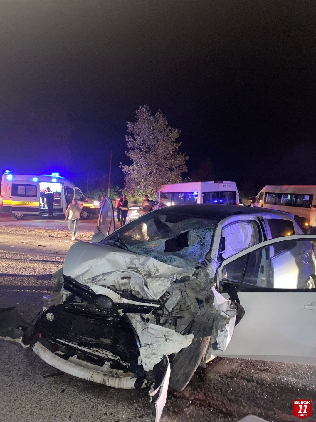 F.M.B. (36) idaresindeki 11 SH 823 plakalı otomobil, Osmaneli-Bilecik kara yolunun Selimiye köyü mevkisinde H.İ.B. (55) yönetimindeki 11 ABU 289 plakalı minibüsle çarpıştı.