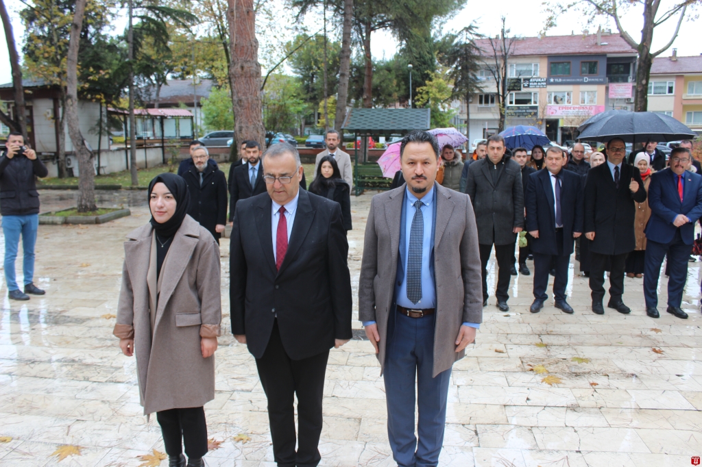 İlçe Milli Eğitim Müdürü Erhan Döş ve ilçede görev yapan öğretmenlerin katılımı ile Atatürk Anıtı’na çelenk bırakıldı, saygı duruşunda bulunuldu ve İstiklal Marşı okundu.