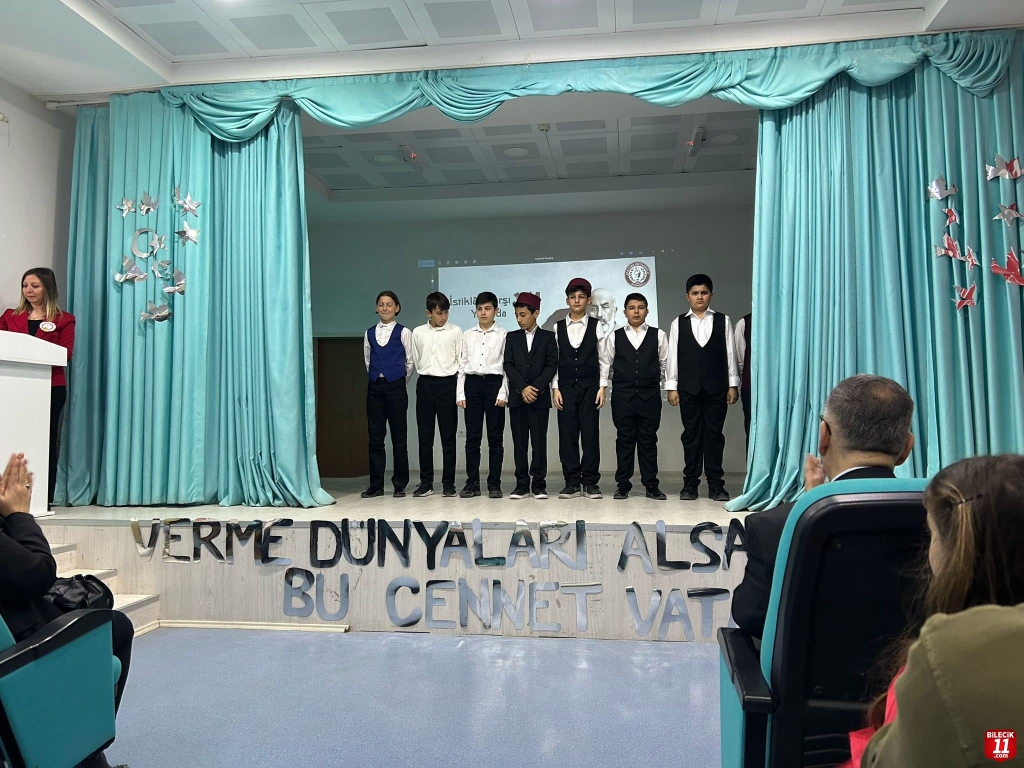 Kaymakam Abdüssamed Kılıç, Belediye Başkanı Bekir Torun, Cumhuriyet Savcısı İlyas Öner, ilçe protokolü, öğrenciler ve öğretmenlerin katıldığı program saygı duruşunun ardından İstiklal Marşı’nın okunmasıyla başladı.
