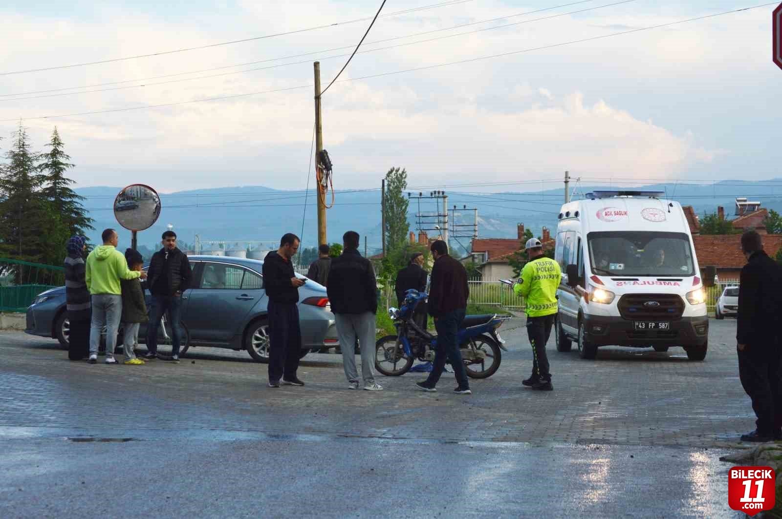 Edinilen bilgilere göre, G.K. (36) yönetimindeki 43 AEE 028 plakalı otomobil ile A.D. (14) idaresindeki 43 HY 343 plakalı motosiklet çarpıştı. Kazada, motosiklet sürücüsü A.D. yaralandı.