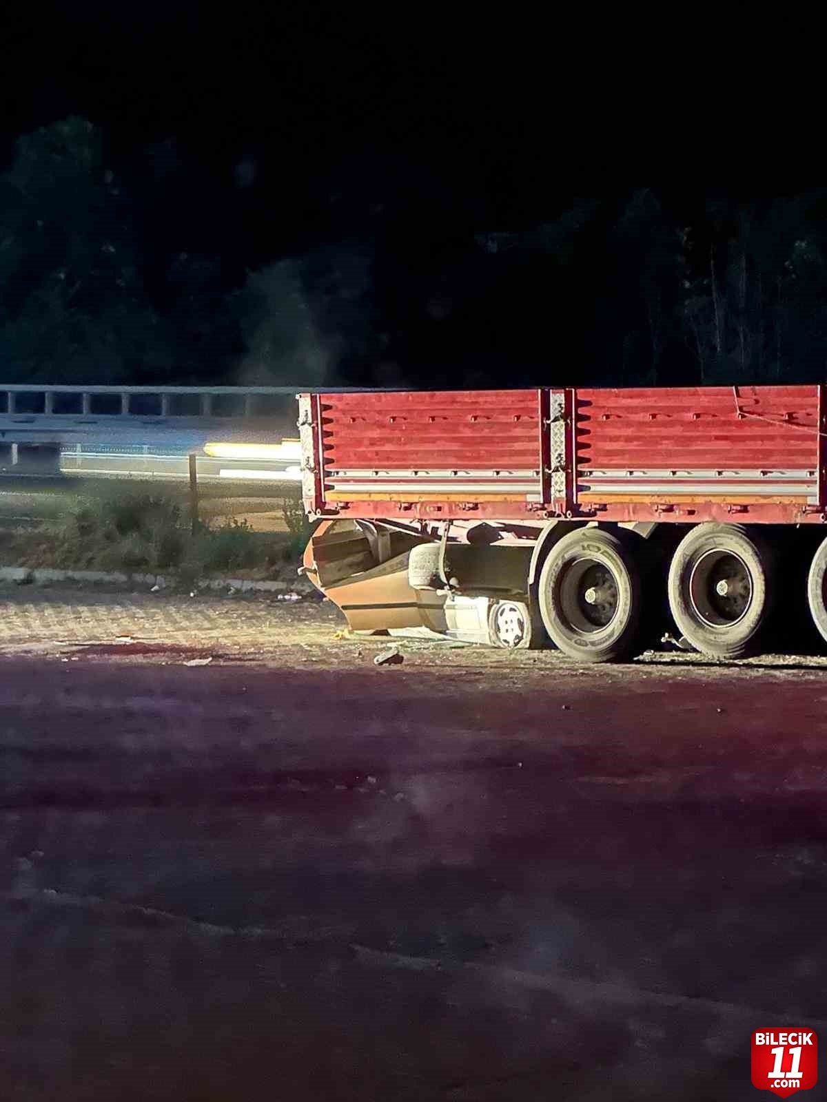 Bilecik’te park halindeki tırın dorsesine arkadan çarpan otomobildeki 5 kişi yaralandı.