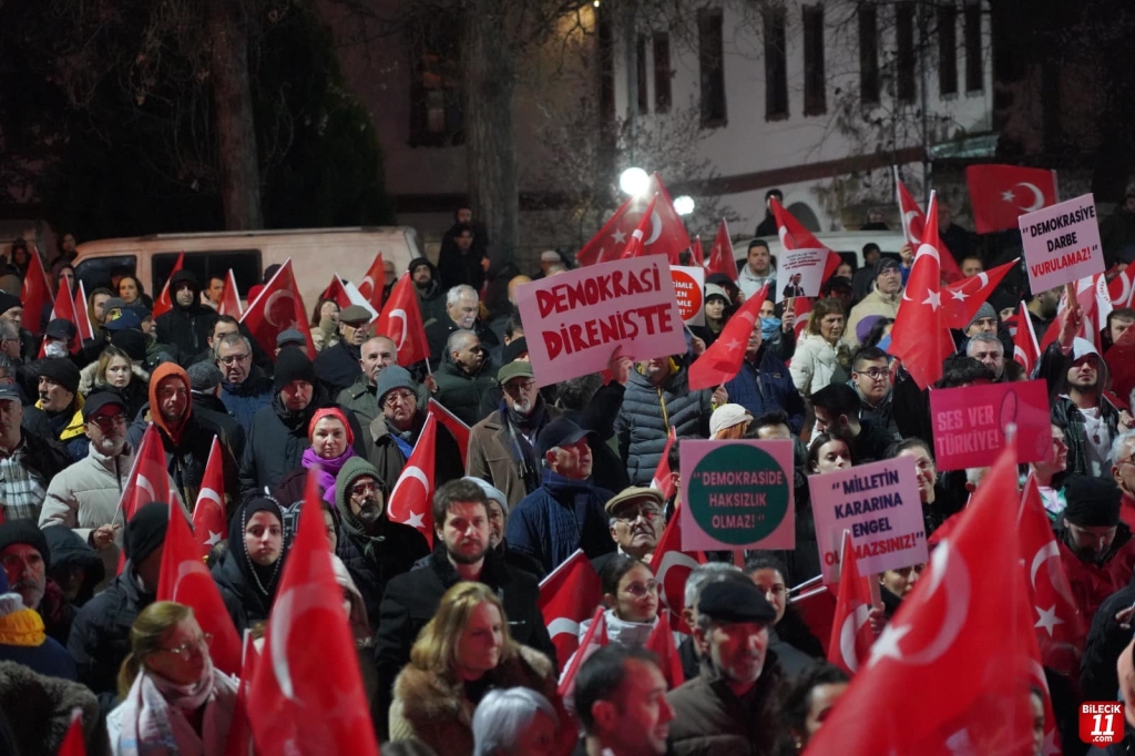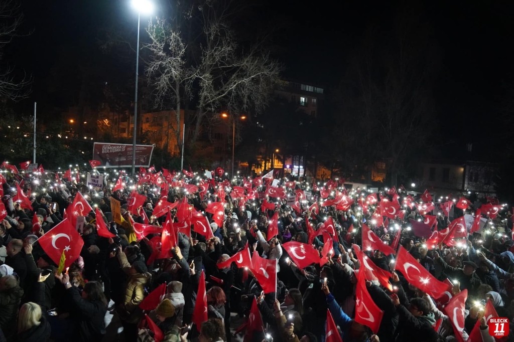 “Dün akşam, İstanbul Büyükşehir Belediye Başkanımız Ekrem İmamoğlu’na yapılan haksızlığa ve ülkemizin demokrasisine vurulan darbeye karşı Bilecik Cumhuriyet Meydanı’nda bir araya geldik!
