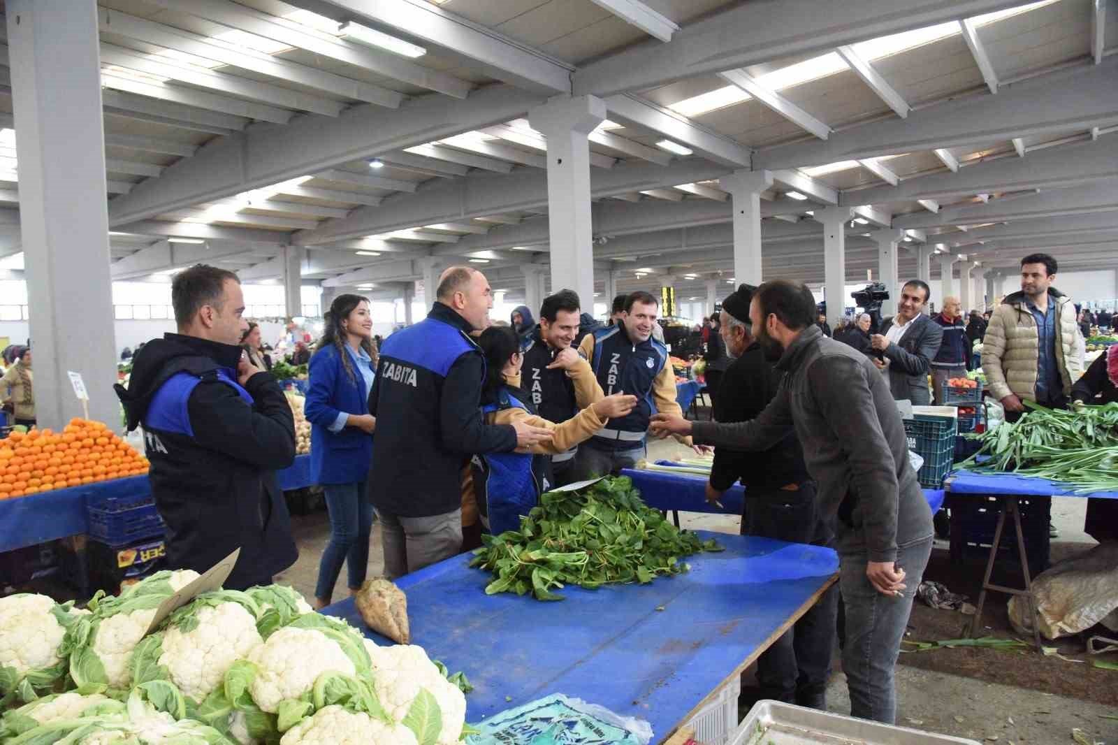 Özel denetmenlere pazar esnafından sevgi gösterisi