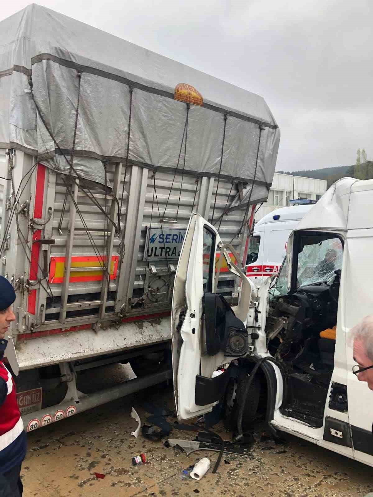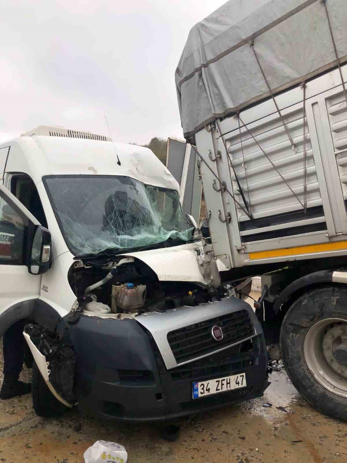 Alınan bilgilere göre kara yolu üzerinde seyir halindeki Ali Y. yönetimindeki 34 ZFH 47 plakalı minibüs, Kızılcapınar Köyü yakınlarında bir petrol ofisi girişinde park halinde bulunan 42 AKG 771 plakalı tırın dorsesine çarptı.