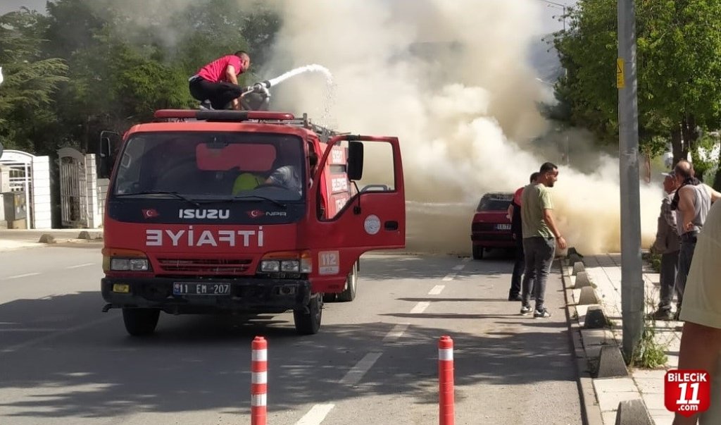 Bilecik’in Söğüt ilçesinde Ertuğrulgazi Türbesi mevkiinde 11 TF 801 plakalı otomobil sürücüsü Berkay P. aracını park edip işlerini halletmeye gitti. Bir süre sonra araç henüz bilinmeyen bir sebepten dolayı bir anda alev aldı.