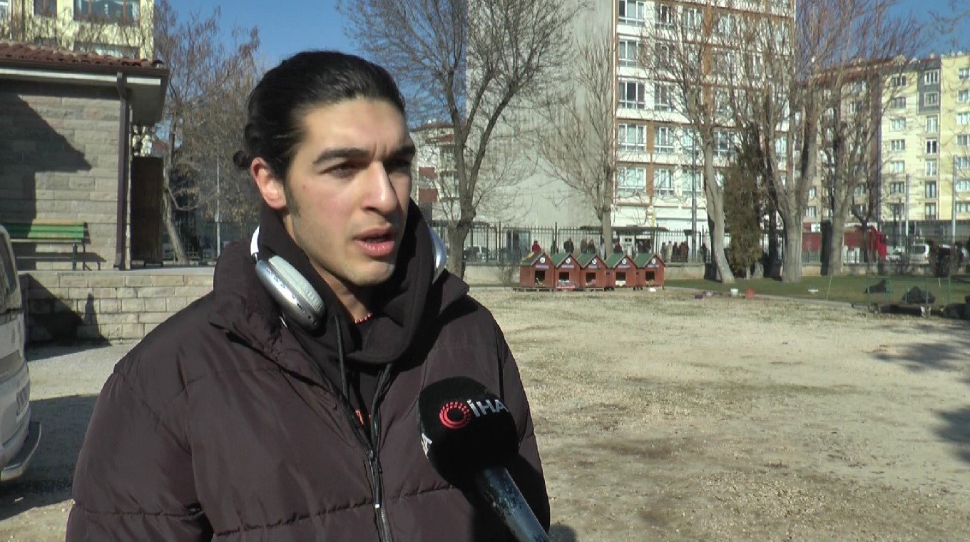 “Hepsi buradalar işte. 10 tane falan var herhalde. Başka dışarıdan gelen köpekler oluyor. Tabii buradakilerle birbirlerine havlıyorlar ama bunlar insanlara zarar vermiyor. Görüyorsunuz, park içinde bunlardan dolayı kendi hallerinde bir sıkıntı yok. Bunları ne yapalım? Bakmayalım mı, yani açlıktan ölsünler mi? Evimizde de köpek var. Onları gezdirmek için çıktığımızda yanımıza geliyorlar, oynuyorlar. Burada mutlular yani. Tepebaşı Belediyesi buraya yuva getirdi. İnsanların çöpe attığı battaniye ve yorganları alıp üşümesinler diye onların altlarına seriyoruz. Saldırmıyorlar, insanlar yalan söylüyorlar. Artık birbiriyle anlaşamıyorlar ki. Hayvanları istemiyorlar. O hale geldiler artık. Aşağı mahalleden yürüyerek buraya geçerken özellikle çocuklar sopayla o demirlere tık tık tık vurduruyorlar, hayvanları kızdırıyorlar. Bu hayvan yani sonuçta, insan değil. İster istemez tepki gösteriyor. Benim apartmanımda adam bana diyor ki, ‘Ezan okunduğu zaman uluyor.’ Ya kardeşim, böyle bir saçmalık var mı ya? Ne yapayım? Bunlarla biz çok mutluyuz.” – İHA