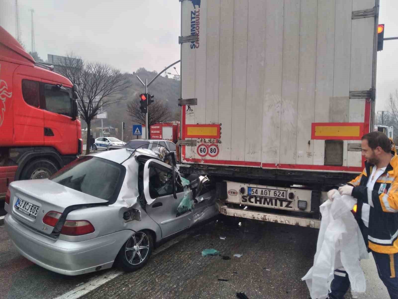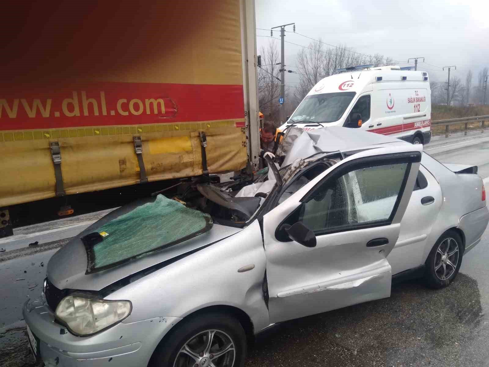 Bilecik’te sürücünün kontrolü kaybettiği otomobil tıra arkadan çarptı. Kazada sürücü yararlanırken, otomobilde yolcu olarak bulunan kişi öldü.