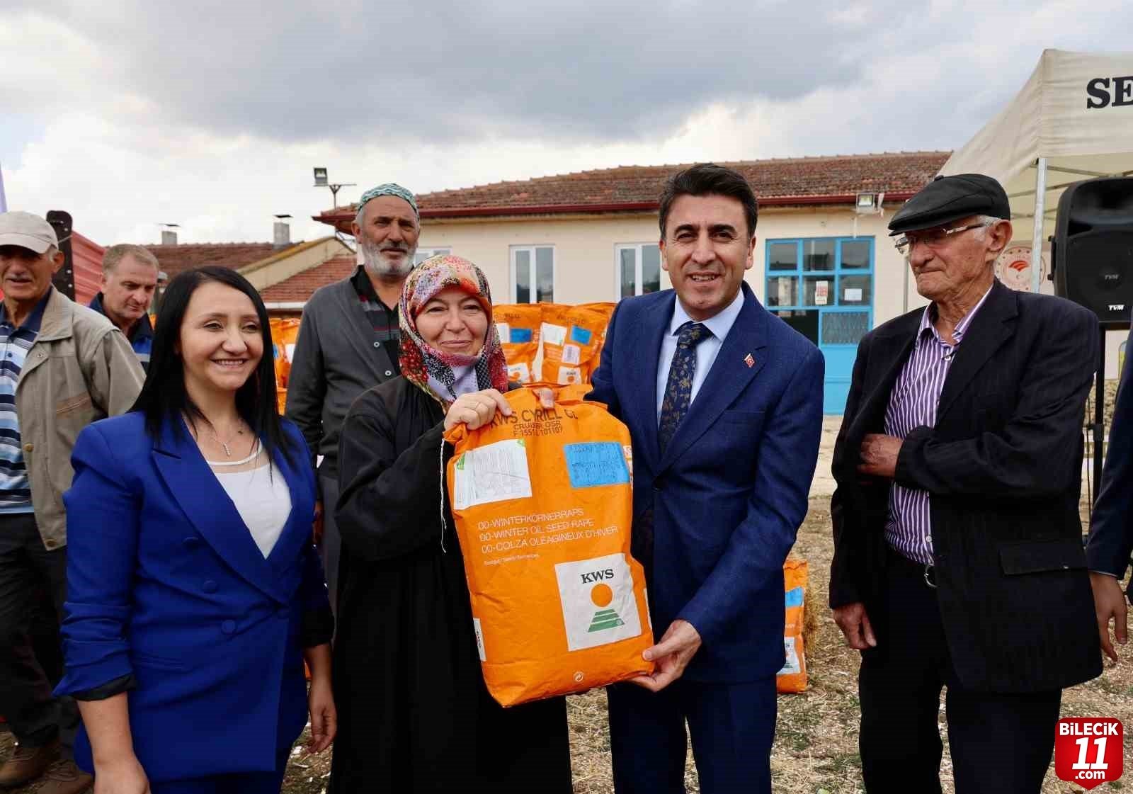 Program öncesi köy halkıyla sohbet eden Vali Aygöl, ardından kanola bitkisi tohum destek projesi kapsamındaki törene katıldı.