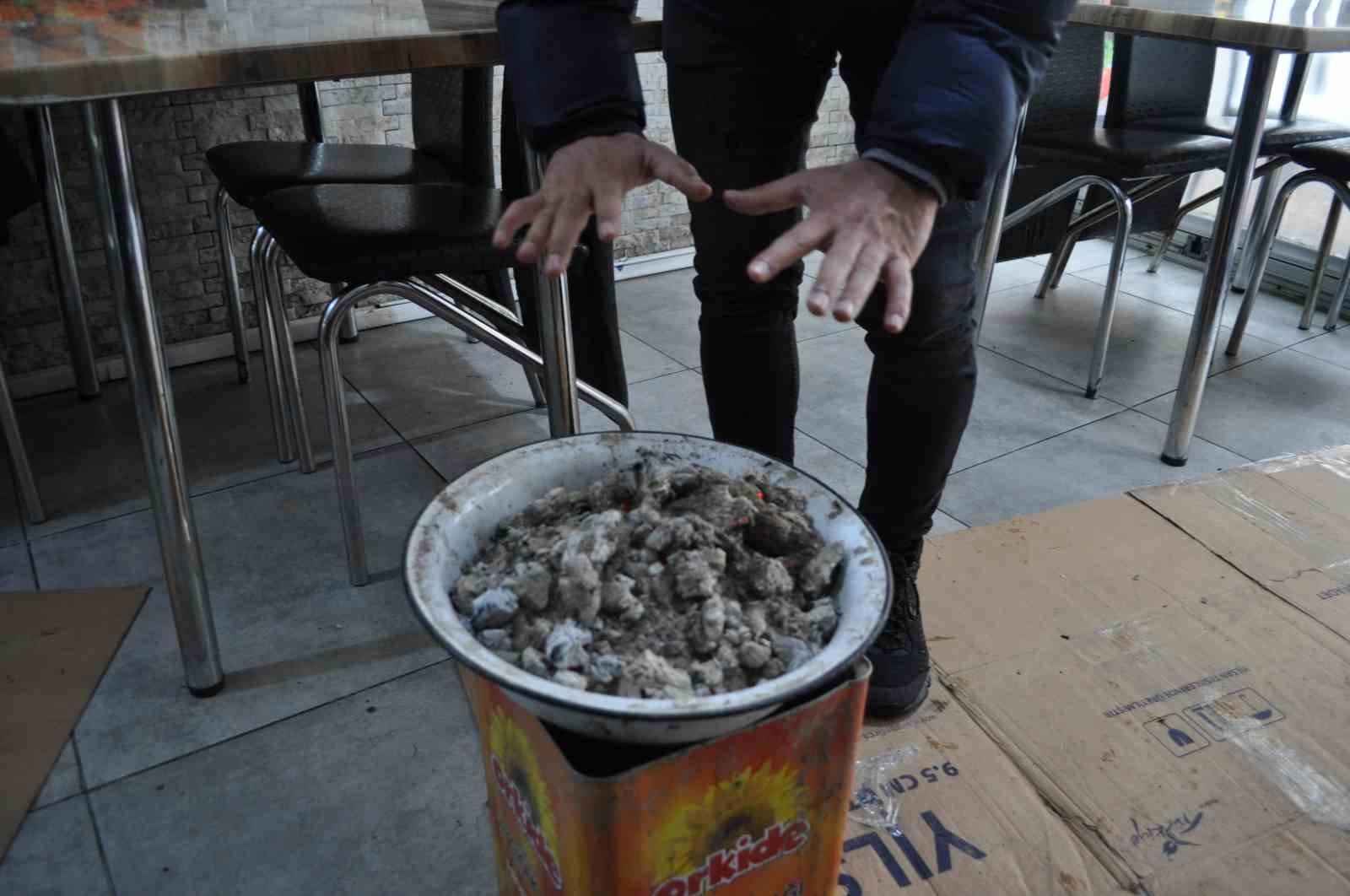 Hava sıcaklığının eksi değerlere düştüğü Eskişehir’de bir pideci esnafı, dükkanını ısıtmak için köz kovası kullanması müşterilerin beğenisini kazandı.