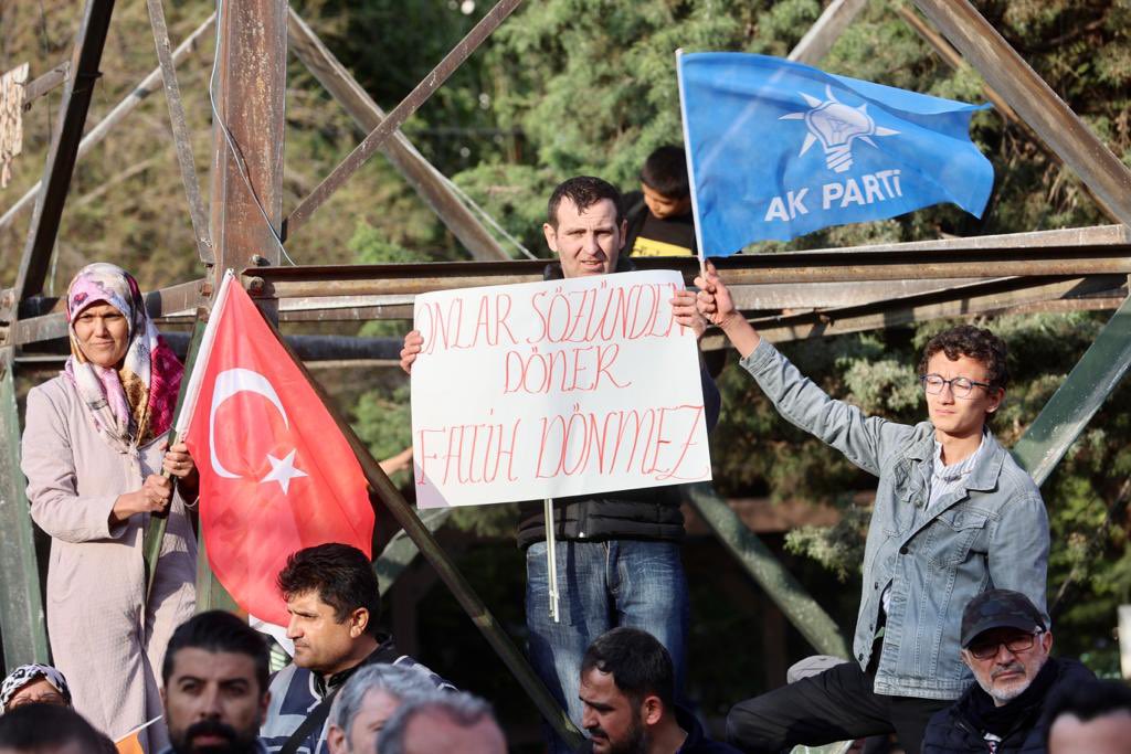 Tepebaşı Mitinginde coşkulu kalabalığa seslenen Dönmez, ''Eskişehir burada… Liderine güvenen, partisine inanan herkes burada… Hemşehrilerimiz "EvelAllah. Bu iş bizde" diyor Plakamız 26 Eskişehir yine çok farklı.'' ifadelerini kullandı.