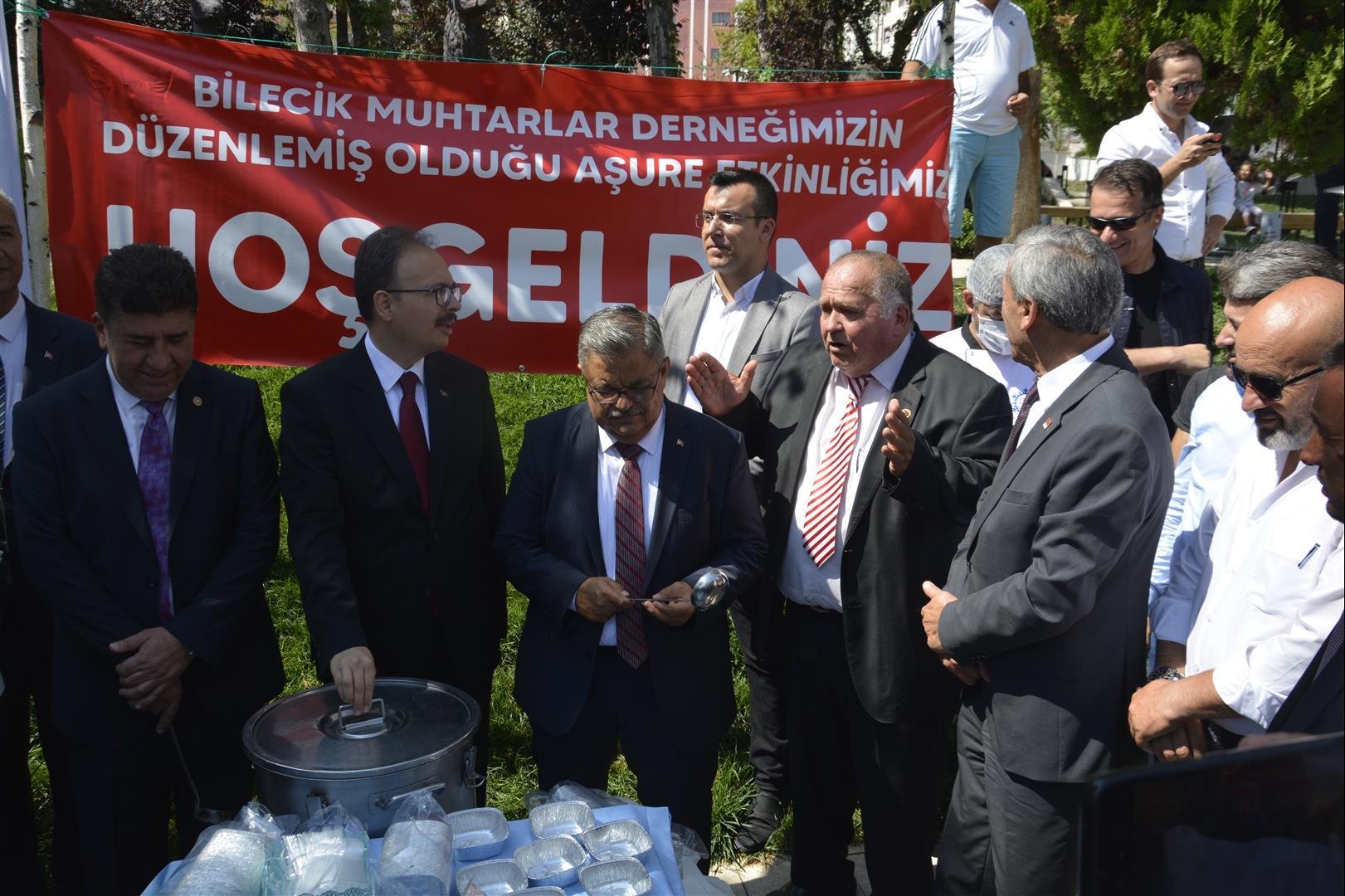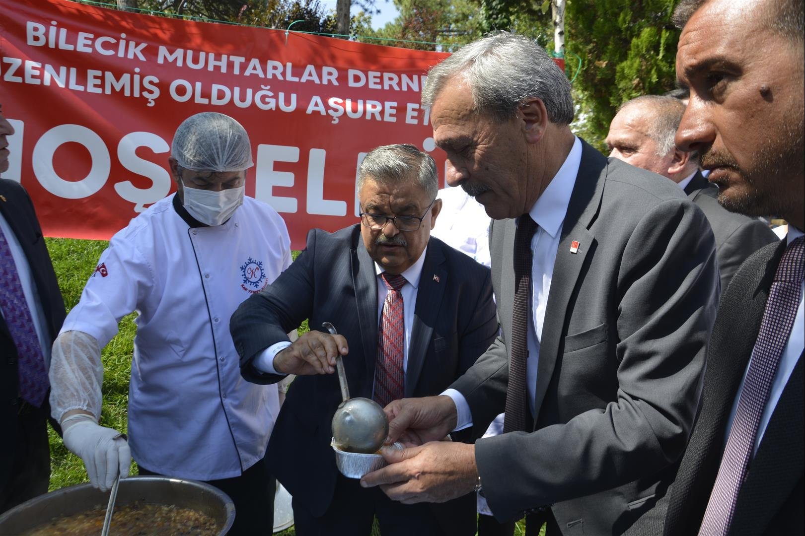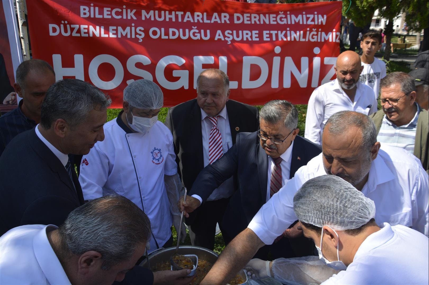Bilecik Muhtarlar Derneği tarafından düzenlenen programda bin kişiye aşure dağıtıldı.