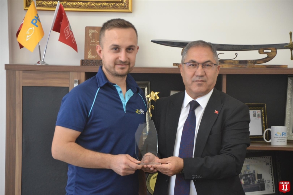 Bu kapsamda Bilecik’te yenilen yüzü ve yeni binasıyla Cumhuriyet Mahallesi Cumhuriyet Caddesi üzerinde vatandaşlara hizmet vermeye başlayan Bilecik PTT Şubesi’nde, kuruluş yıldönümünü etkinlikleri kapsamında işlem yapan 184 numaralı müşteri olan Shakahnoza Kambarova’ya filatelik pul hediye edilirken, Bilecik PTT Şubesi’nde görev yapan Uğur Baklacı’ya ise başarılı çalışmalarından dolayı plaket verildi.