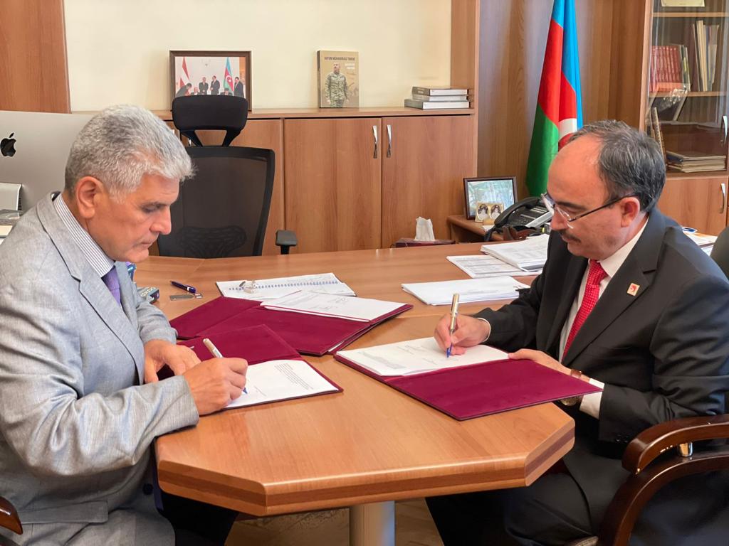 Genel Sekreter Öğr. Gör. Özgür Özcan ve Yabancı Öğrenciler Koordinatörü Öğr. Gör. Murat Yatağan’ın da eşlik ettiği Beydemir, Bakü Devlet Üniversitesi, Azerbaycan Pedagoji Üniversitesi ve Hazar Üniversitesi Rektörleri ile eğitim-öğretim, öğrenci hareketliliği, ortak araştırma ve geliştirme projeleri gibi geniş bir alanda iş birliği protokolleri imzaladı.