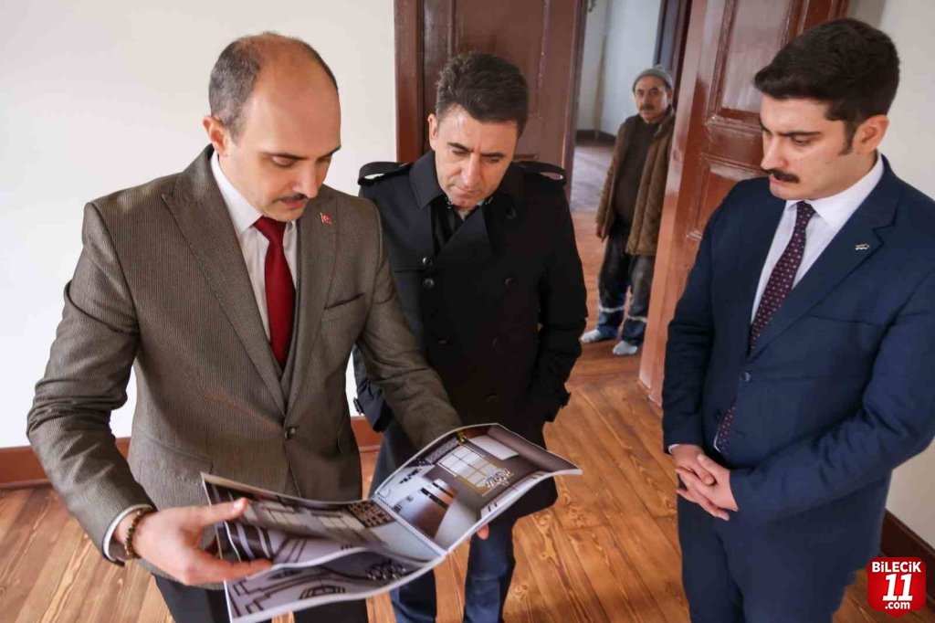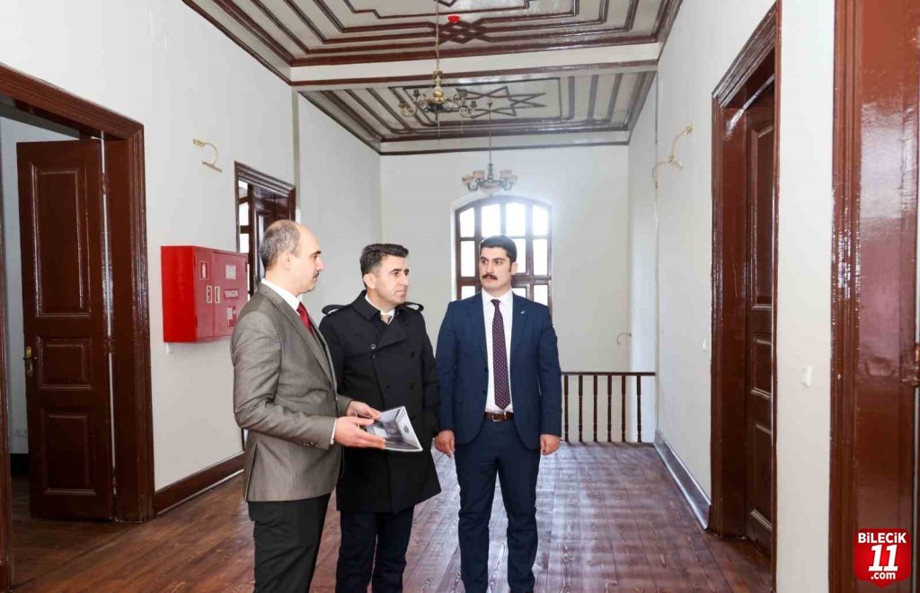 Vali Şefik Aygöl, Söğüt İlçesinde restorasyonu süren tarihi İlçe Halk Kütüphane binasını ziyaret ederek incelemelerde bulundu.