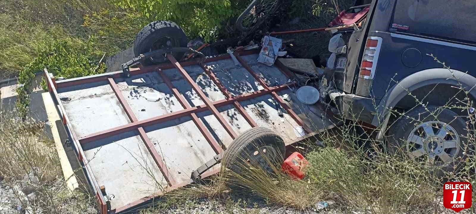 Römork bağlı ticari araç şarampole girdi, 2 kişi yaralandı