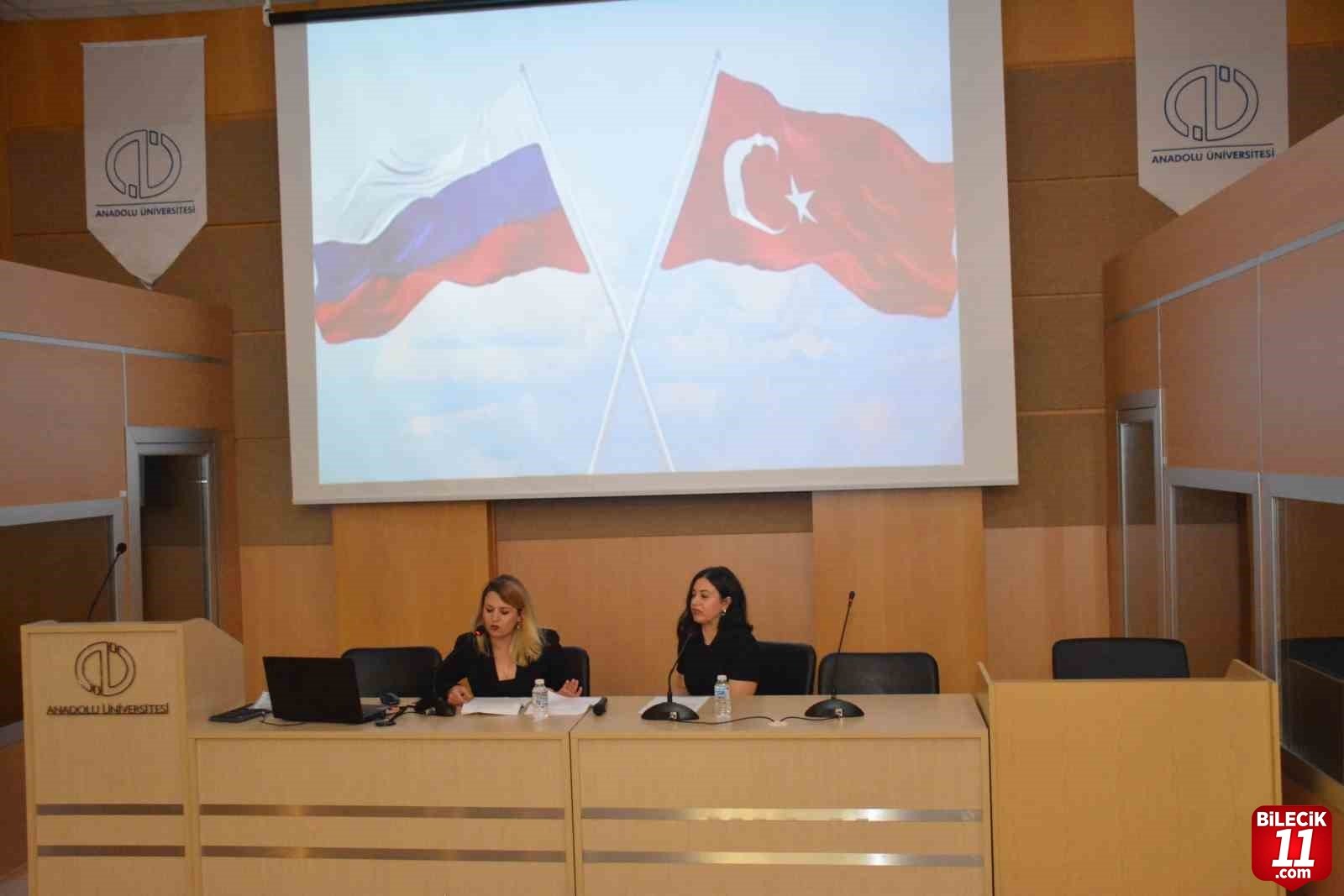 Anadolu Üniversitesi Edebiyat Fakültesi Rus Dili ve Edebiyatı Bölümü tarafından 10 Kasım Atatürk’ü Anma Programı kapsamında, “Rus Toplumunda Atatürk’ün Yeri” başlıklı seminer Edebiyat Fakültesi Taciser Tüfekçi Sivas Konferans Salonu’nda düzenlendi. Yozgat Bozok Üniversitesi Dr. Öğr. Üyesi Esra Elmacıoğlu’nun konuşmacı olarak katıldığı seminere, Anadolu Üniversitesi Edebiyat Fakültesi Dekan Yardımcısı Prof. Dr. B. Yelda Uçkan ve Rus Dili ve Edebiyatı Bölüm Başkanı Prof. Dr. Makbule Sabziyeva başta olmak üzere çok sayıda kişi katılım sağladı.