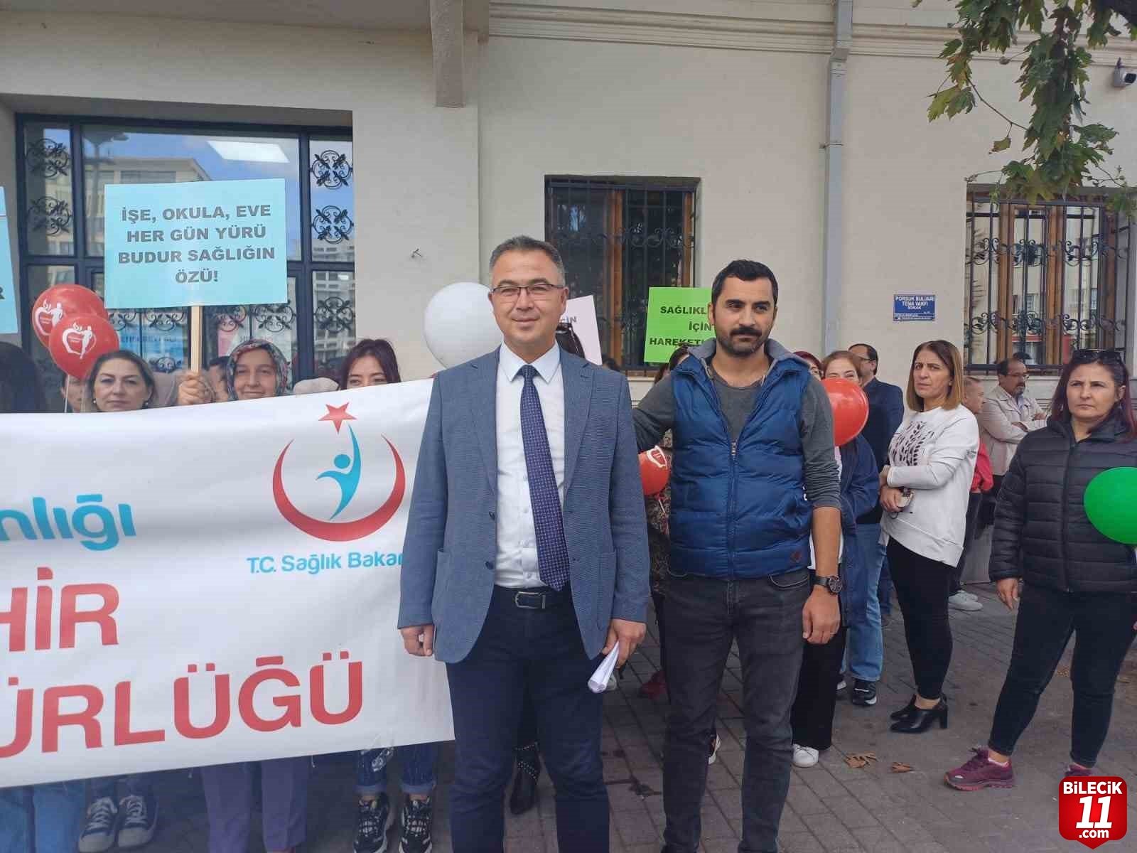 İl Sağlık Müdürlüğü çalışanları ’3-4 Ekim Dünya Yürüyüş Gününde’ İl Sağlık Müdürlüğü önünden yürüyüş düzenledi.