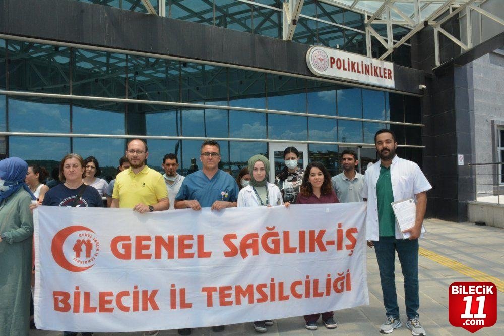 Genel Sağlık-İş Sendikası Üyeleri Bilecik Eğitim ve Araştırma Hastanesi önünde yaptıkları basın açıklaması ile kendilerine yapılan maaş zammını protesto ettiler.