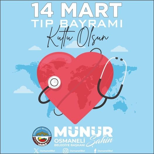 Osmaneli Belediye Başkanı ve AK Parti adayı Münür Şahin 14 Mart Tıp Bayramı dolayısıyla bir mesaj yayımladı. Şahin, “. Bugün, bu kutsal görevi yerine getiren tüm doktorlarımıza, hemşirelerimize, sağlık personelimize ve tıp camiamıza şükranlarımızı sunuyoruz.” dedi.