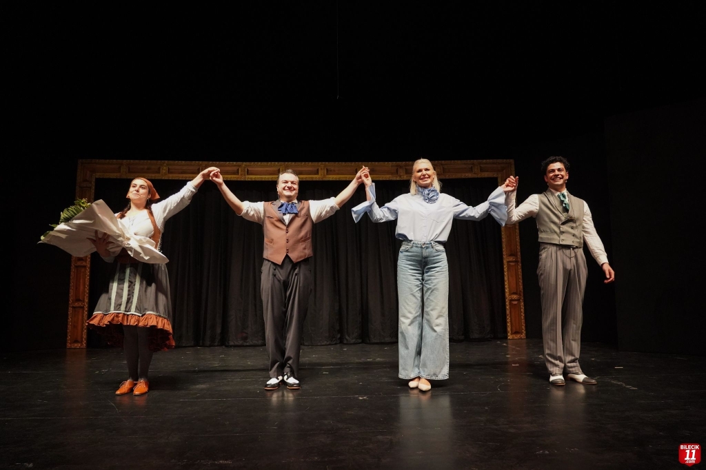 Bilecik Belediyesi tarafından kültür ve sanat etkinlikleri kapsamında sahne alan Şakşakçılar adlı oyunun usta oyuncuları, ayakta alkışlandı.