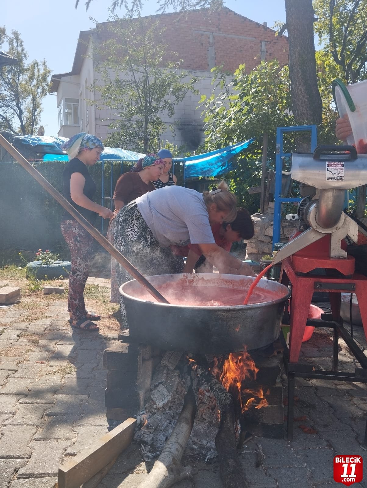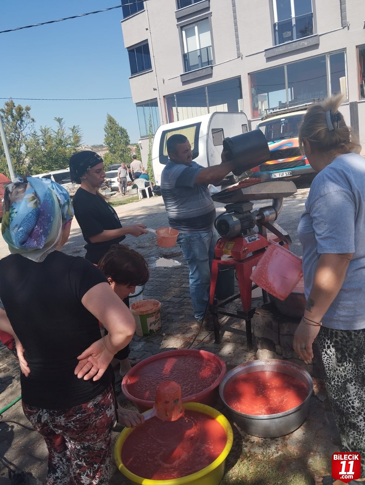 Bilecik’in yaz aylarının vazgeçilmesi kışlık salça yapımı devam ederken ortaya renkli görüntüler de çıkıyor.